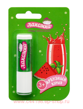 Девиз этой помады: «Лето круглый год!» В состав помады входит комплекс натуральных компонентов: масло какао, масло касторовое, витамин Е и экстракт цветков календулы. Помада смягчает, увлажняет и питает кожу губ, активно защищает ее от негативного воздействия окружающей среды. Особенно важен такой уход в холодное время года. Также помада содержит сукралозу – безопасный заменитель сахара, который придает сладковатый вкус. А аромат спелого арбуза подарит прекрасное летнее настроение. «Лакомка» - полезный десерт для красоты и нежности губ!ВведитеСостав: масло минеральное, церезин, воск карнаубский, ПЭГ-45/ додецил гликоль сополимер, масло какао, масло касторовое, пропиленгликоль, ароматизатор, парафин, сукралоза, экстракт цветков календулы, рапсовое масло, бутилгидрокситолуол, бутилгидроксианизол, пропилгаллат, моноглицериды, лимонная кислота, витамин Е-ацетат.