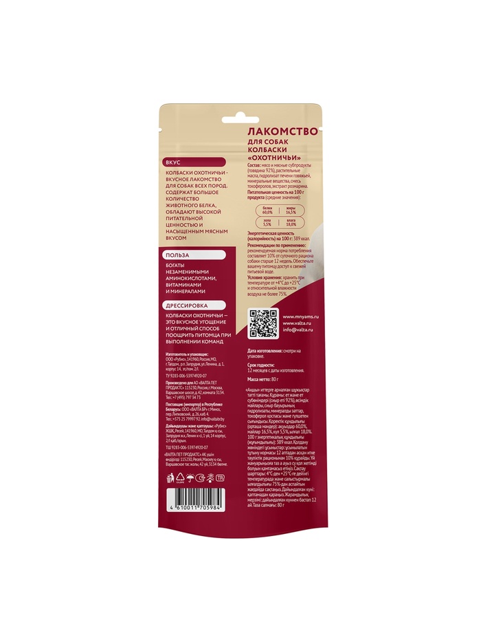 Габариты: 1,5 x 8 x 20 Доставка: Платная Страна: Россия В боксе: 60 шт Фасовка: по 1 шт Индивидуальная упаковка: Пакет (БОПП, полиэтилен, ПВХ, дой-пак) Габариты товара: 1,5 см × 8 см × 20 см Сертификат: Не подлежит сертификации Вес, г: 80 Вид лакомств: Колбаски Особенности корма: Дополнительный Порода/размер: Для всех пород Форма упаковки: Пауч Возраст животного: Взрослые собаки (от 1 до 5 лет) Фиксированная цена: Да Ключевые особенности: Бережная сушка. Натуральный состав. Высокое содержание микроэлементов, аминокислот, минеральных веществ. Подходит для собак всех пород. Профилактика анемий, связанных с недостатком железа в организме. Два формата упаковки: большая и маленькая. Не отбеленные лакомства. Удобная зип-упаковка "аромат под замком". Без использования добавок и красителей. Аппетитные колбаски содержат высокое количество белка. Источник аминокислот, витаминов и микроэлементов. Состав лакомства способствует профилактике анемий, связанных с недостатком железа. Также, улучшает состояние кожи и шерсти, благодаря содержанию жирных кислот и антиоксидантов. Комментарии к товару