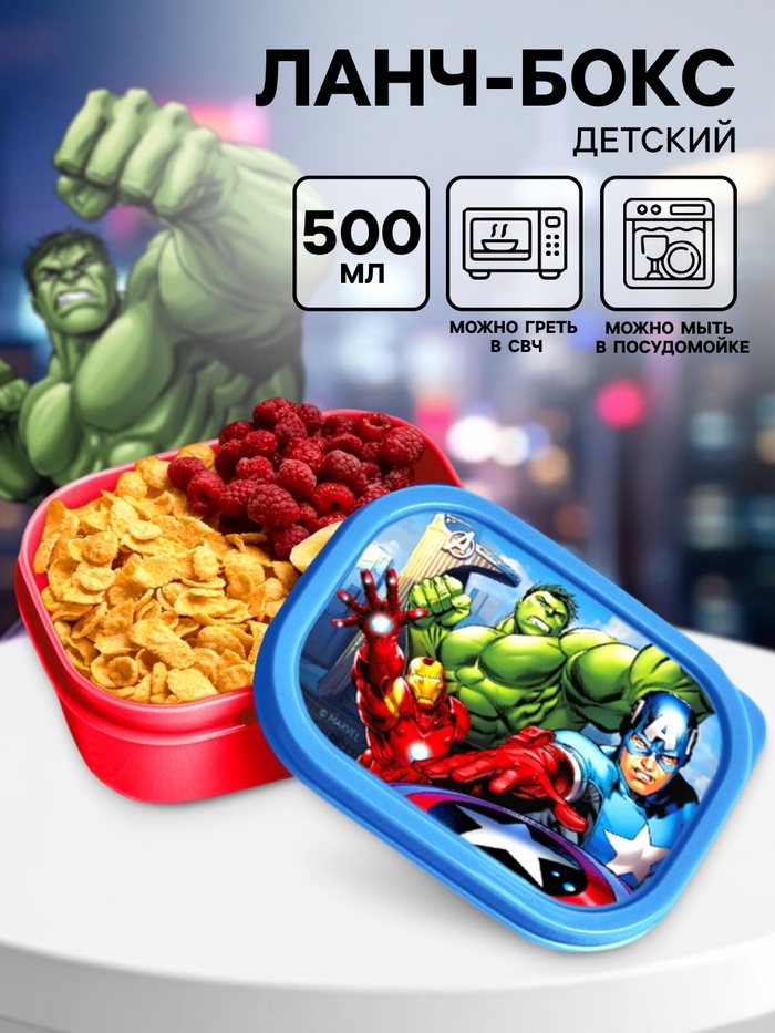 Яркий дизайн с изображением героев порадует детей, а удобная прямоугольная форма делает ланч-бокс компактным и вместительным.
