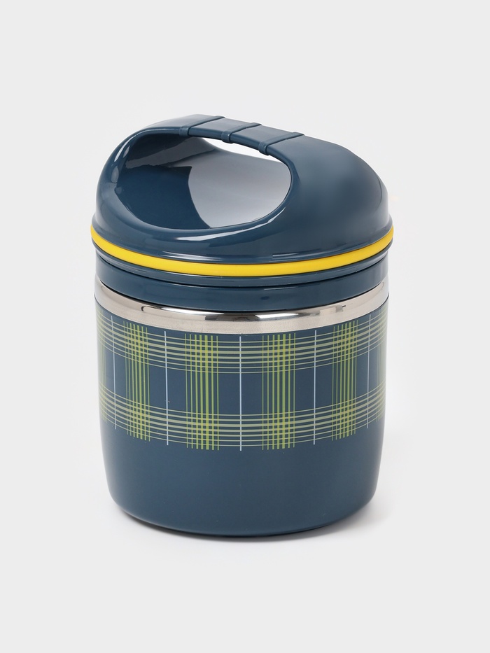 Берите обед с собой — аккуратно, стильно и без смешивания блюд! Ланч-бокс на 780 мл — это двухуровневый контейнер с герметичной крышкой и декоративным рисунком на синем корпусе.