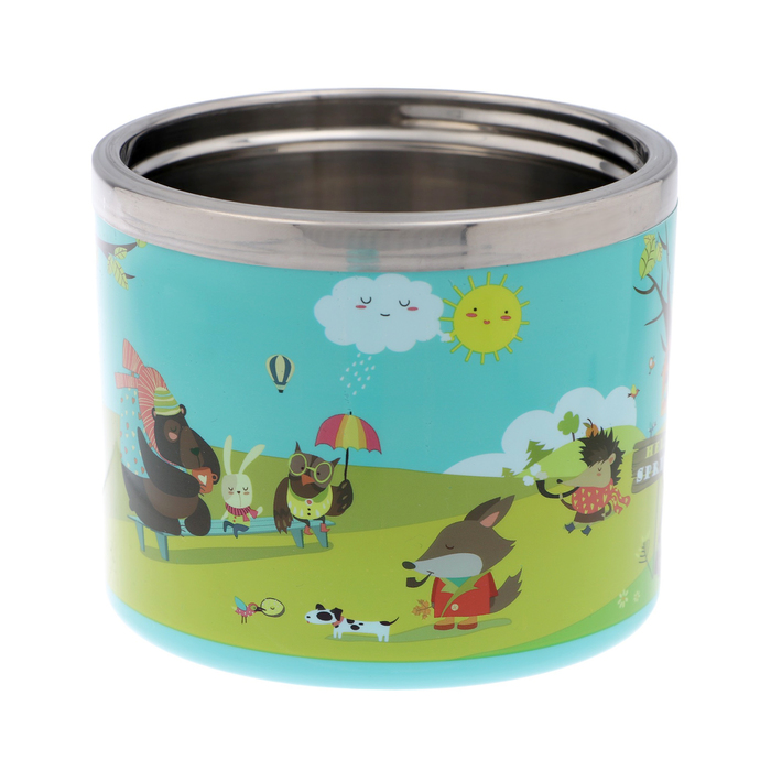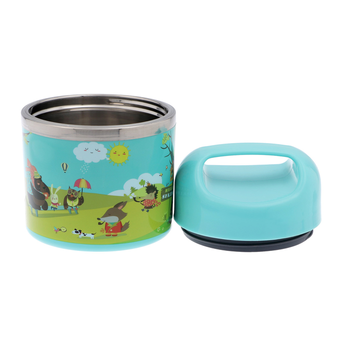 Ланч-бокс - это ручной контейнер для пищевых продуктов, используемый для транспортировки еды. Этот стильный и функциональный аксессуар станет незаменимым помощником в повседневной жизни. Среди разнообразия термопосуды ланч-бокс из металлической основы внутри - одна из популярных и универсальных моделей. Ланч-бокс из нержавеющей стали в пластиковом корпусе не содержит вредных веществ и безопасен для здоровья. Благодаря плотно закручивающейся крышке, контейнер надежно сохраняет свежесть и аромат ваших блюд, предотвращая протекание и рассыпание. Дизайн ланч-бокса "В мире зверей" выполнен в голубом цвете и украшен изображениями различных животных. Такой яркий и привлекательный дизайн обязательно понравится детям и сделает процесс приёма пищи более весёлым и интересным. Легкий и компактный размер 11 х 15 см, позволяет удобно разместить ланч-бокс в сумке или рюкзаке, не занимая много места, а яркий цвет добавит красок в ваш день. Отлично подходит для любых типов пищи, включая супы, вторые блюда, салаты и десерты. Обеспечивает надёжное сохранение температуры пищи в течение трех часов. Это позволит вам наслаждаться горячими блюдами даже спустя некоторое время после их приготовления, сохраняя их вкусовые качества и полезные свойства. Отличительной особенностью этого ланч-бокса является клапан на внутренней стороне крышки, который служит для выпуска пара, для более легкого открытия контейнера после нахождения в нем горячей пищи.