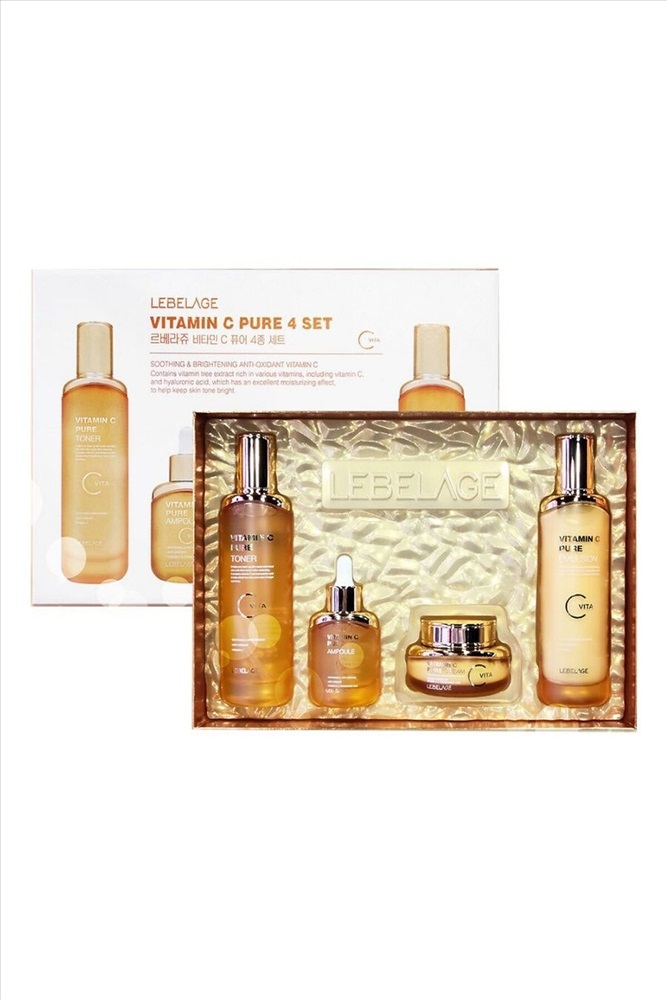 ID товара: 1117727 Сезон: Демисезон Объем: 120 x 2, 55, 35 мл Вес нетто: 2 Д-Ш-В: 37/22/7.3 Производитель: Lebelage Температурный режим: Хранение и транспортировка при температуре не ниже 0 °C Срок годности (мес): 36 Страна бренда: Россия Страна производства: Республика Корея Антивозрастной набор для ухода за кожей лица от Lebelage богат витамином С и гиалуроновой кислотой, обладает превосходным увлажняющим эффектом, помогает сохранить яркий тон кожи. Состав набора: Lebelage Тонер для лица с витамином С / Vitamin C Pure Toner, 120 мл Lebelage Vitamin C Pure Toner обладает отличным антиоксидантным действием, помогая сохранить яркий тон кожи. Транексамовая кислота сохраняет кожу яркой, предотвращая её пигментацию. Способ применения: После умывания утром и вечером возьмите необходимое количество содержимого на ватный диск или ладонь и нанесите на все лицо легкими постукиванием. Состав Vitamin C Pure Toner: Water, Butylene Glycol, Glycerin, Ethylhexylglycerin, Chlorphenesin, PPG-26-Buteth-26, Arginine, Carbomer, PEG-40 Hydrogenated Castor Oil, Glyceryl Caprylate, Allantoin, Panthenol, 1,2-Hexanediol, Centella Asiatica Extract, Disodium EDTA, Limonene, Sodium Hyaluronate, Fragrance, Hippophae Rhamnoides Fruit Extract, Citrus Limon (Lemon) Fruit Extract, Citral, Ascorbic Acid (10 ppm), Tranexamic Acid, Beta-Glucan, CI 19140. Lebelage Эмульсия для лица с витамином С / Vitamin C Pure Emulsion, 120 мл Эмульсия с витаминами и транексамовой кислотой обновляет, смягчает, восстанавливает поврежденную кожу, обладает заметным омолаживающим эффектом. Экстракты облепихи и лимона (источники витамина С) сохраняют молодость и красоту, делают тон кожи ровным и свежим, повышают плотность и упругость. Транексамовая кислота устраняет тусклый цвет, выравнивает тон кожи и обновляет. Эмульсия подходит для всех типов кожи, но особенно рекомендуется для тусклой, неровной, уставшей. Способ применения: Нанести эмульсию легкими круговыми движениями до полного впитывания на очищенную кожу лица и шеи утром и вечером. Состав: Water, Mineral Oil, Caprylic / Capric Triglyceride, Glycerin, Butylene Glycol, Petrolatum, Glyceryl Stearate, Stearic Acid, Cetearyl Alcohol, Polysorbate 60, Sorbitan Stearate, PEG-100 Stearate, Phenoxyethanol, Dimethicone, Ethylhexylglycerin, Chlorphenesin, Carbomer, Arginine, Glyceryl Caprylate, Limonene, Disodium EDTA, Dipotassium Glycyrrhizate, Allantoin, Tocopheryl Acetate, Fragrance, Citral, Betaine, 1,2-Hexanediol, Sodium Hyaluronate, Ascorbic Acid (10 ppm), Tranexamic Acid, CI 19140, Hippophae Rhamnoides Fruit Extract. Lebelage Крем с витамином С / Vitamin C Pure Cream, 55 мл Lebelage Vitamin C Pure Cream – это крем для лица с витамином С заряжает кожу энергией, насыщает её витаминами, повышает тонус и значительно улучшает цвет лица. Этот крем — идеальное решение в рамках ухода за тусклой и «серой» кожей, которая нуждается в восстановлении свежего и яркого тона. Средство содержит витамин С в микрокапсулах, который оживляет тусклую и уставшую кожу. Витаминно-фруктовый коктейль насыщает её полезными микро- и макро- элементами, осветляет нежелательную пигментацию, не вызывая раздражения. Крем для лица доставляет в клетки кожи необходимое количество влаги, за счёт чего лицо выглядит более ухоженным, свежим Комментарии к товару