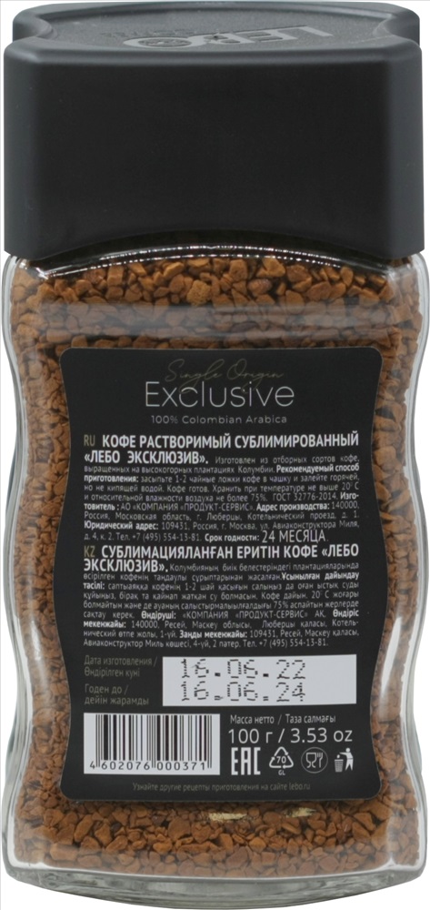 Натуральный растворимый кофе. Состав: арабика.Exclusive растворимый создан по технологии freeze dried, которая сохраняет все полезные и вкусовые качества натуральной Арабики с высокогорных плантаций Колумбии. Удобная упаковка, быстрое приготовление и насыщенный вкус — все для того, чтобы наслаждаться ароматным кофе каждый день!Кислотность — 4 из 8Интенсивность — 4 из 8Горчинка — 2 из 8