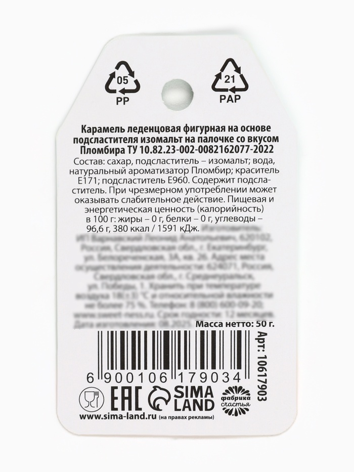 Состав: сахар, патока, вода, натуральные пищевые ароматизаторы: пломбир, Е171.