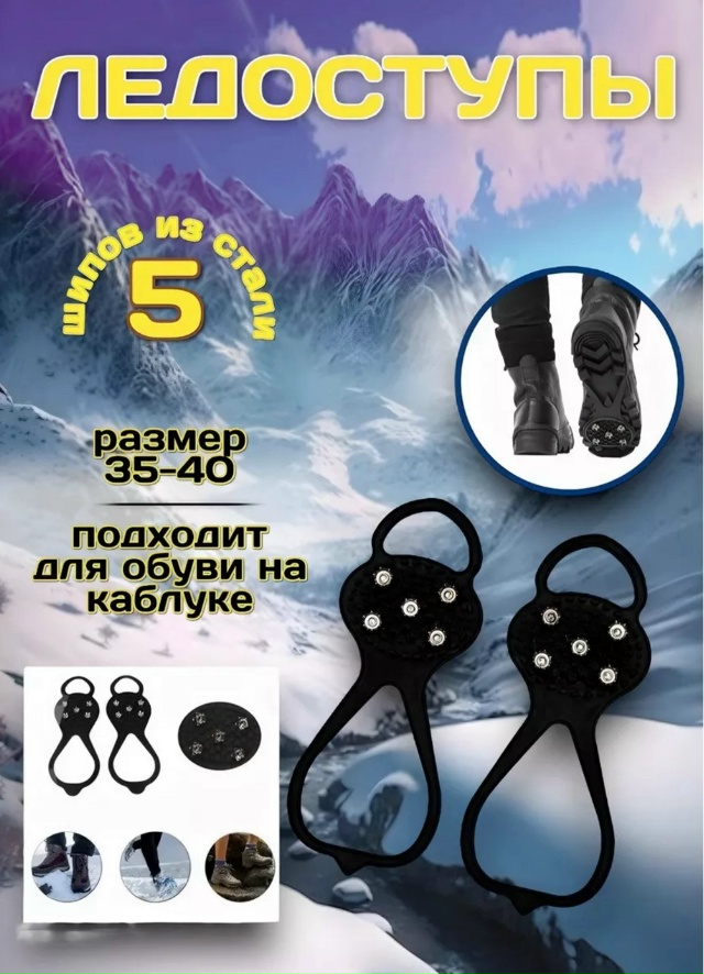 Ледоходы предназначены для предотвращения скольжения обуви при хождении по обледеневшей поверхности. Лучший способ огорадить себя от падений и травм - использовать ледоступы, которые можно надеть на любые сапоги. Они предотвращают скольжение благодаря специальным нестираемым шипам, обеспечивающим надежное сцепление с поверхностью и обладают высокой износостойкостью. Ледоходы изготовлены из морозостойкой резины, что позволяет им сохранять свои свойства даже при очень низких температурах. Они легко надеваются, не мешают ходьбе и прочно держатся на ботинках, крепятся на пятке и носке.