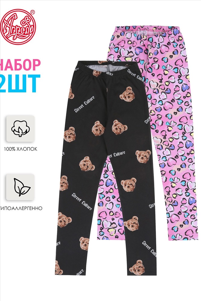 Комплект из двух пар облегающих леггинсов для стройных девочек, выполненных из кулира - легкого хлопкового полотна без добавления лайкры. Изделия на комфортном эластичном поясе. Уход: только машинная стирка (руками не стирать!) при температуре 40 градусов, без предварительного замачивания. Материал: кулир