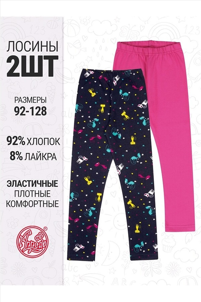 Комплект из двух пар облегающих леггинсов для стройных девочек, выполненных из кулира - легкого хлопкового полотна с лайкрой. Изделия на комфортном эластичном поясе. Уход: только машинная стирка (руками не стирать!) при температуре 40 градусов, без предварительного замачивания.