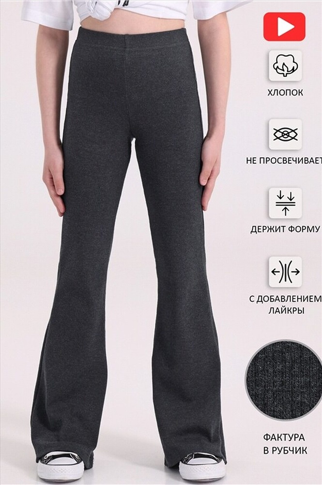 ID товара: 1034065 Акции: -16%, до 01.12.2025 Состав: Хлопок 68%, Полиэстер 27%, Лайкра 5% Сезон: Весна/Лето Длина: Длинные Фасон: Клеш Посадка: Средняя Тип карманов: Без карманов Основная ткань: Хлопок Стиль: Повседневный Страна бренда: Россия Страна производства: Россия Эффектные леггинсы-клеш для девочки выполнены из ластика - эластичного хлопкового полотна в рубчик. Изделие на комфортном эластичном поясе, клеш от колена. Отличный выбор на каждый день! Уход: только машинная стирка (руками не стирать!) при температуре 40 градусов, без предварительного замачивания. Комментарии к товару
