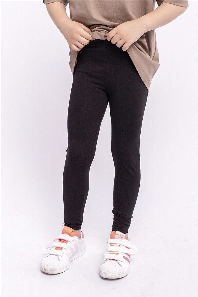 Леггинсы для девочки черные однотонные из супрема. Пояс на резинке.