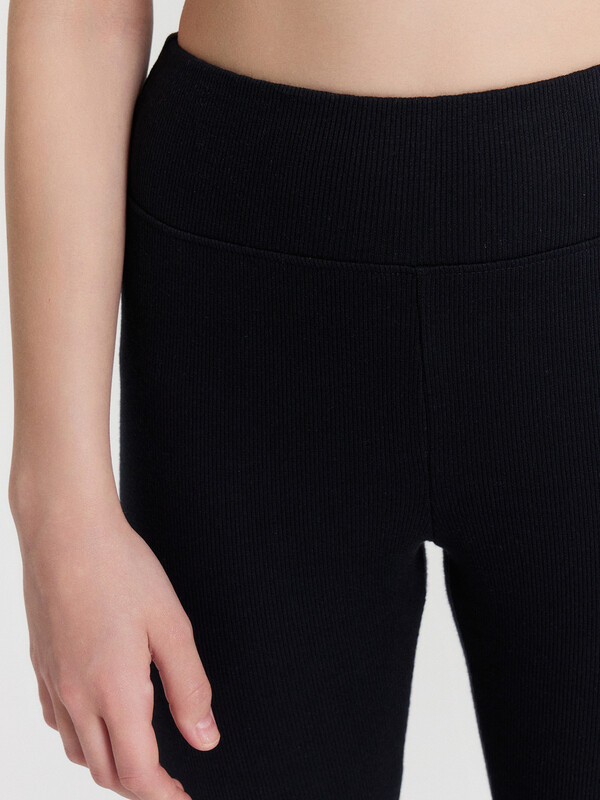 Леггинсы для девочек прилегающего силуэта. Пояс отрезной, широкий, с эластичной тесьмой внутри.Посадка высокая.
