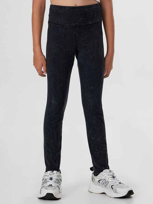 Обработка эйсид придает леггинсам стильный винтажный эффект – это специальная технология, которая создает мягкие потертости и неравномерный оттенок, добавляя образу индивидуальности. Такой дизайн понравится юным модницам, ценящим необычные детали.