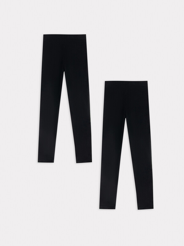 Две пары легинсов для девочек. Выполнены из качественной хлопковой кулирки с добавлением эластана. Длина легинсов до щиколотки, модель плотно облегает ножки по всей длине. Эластичная тесьма в поясе не давит, но хорошо удерживает легинсы на талии. Рекомендуем!