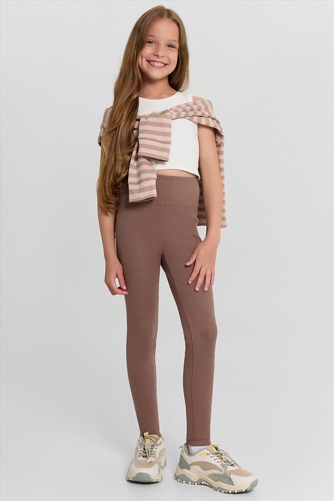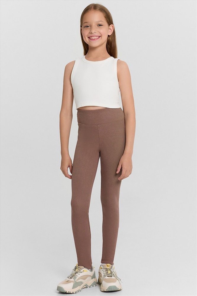 Леггинсы для девочек прилегающего силуэта. Пояс отрезной, широкий, с эластичной тесьмой внутри.Посадка высокая.