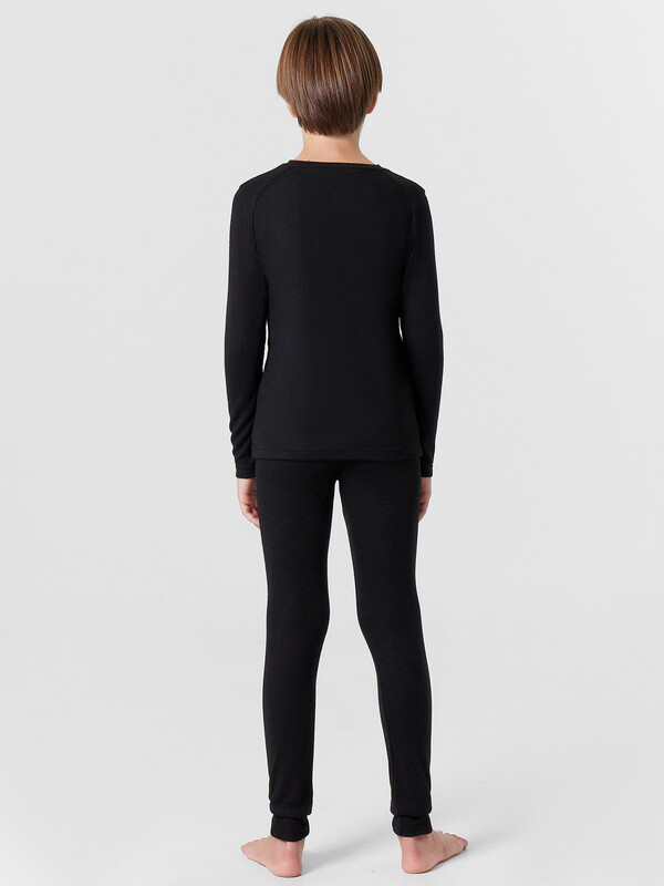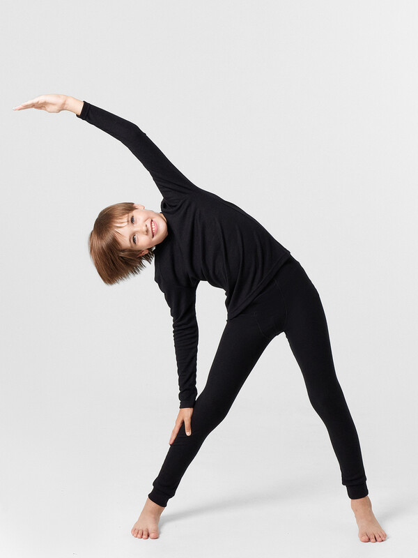 Прилегающие детские леггинсы. Умный материал фактуры "термо" удерживает тепло и отводит избыточную влагу. Особый способ вязания полотна, предуcматривающий воздушные ячейки, соединяющие основу полотна с верхним слоем, придаёт изделию особые гигиенические и термические свойства. Австрийская технология производства ткани позволяет выдерживать экстремальные температуры до -20 градусов Цельсия. Изделия из такой ткани могут использоваться ежедневно, для занятий спортом, охотой, рыбалкой и активного отдыха.