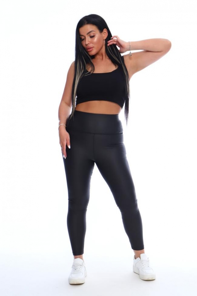 Легинсы из стрейч - кожи благодаря очень эластичной ткани моделируют силуэт и позволяют создать стильный, актуальный образ. Высокий пояс имеет утягивающий эффект. В легинсах можно заниматься спортом, а также, в комплекте с соответствующим верхом, они подойдут для любого мероприятия.