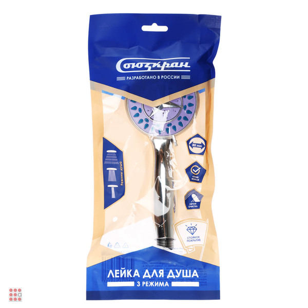 Лейка для душа СоюзКран с тремя режимами работы. Переключатель режимов - рычажок. Диаметр лейки 8 см. Цвет - хром.