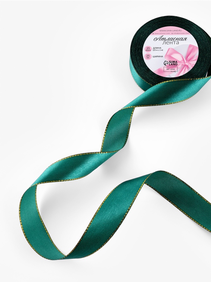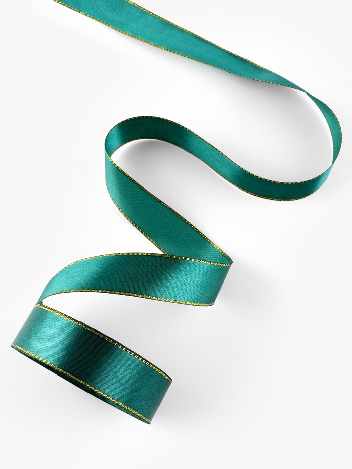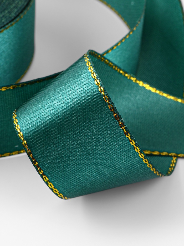 Эта тёмно-зелёная атласная лента с золотым люрексом — идеальный выбор для тех, кто ценит элегантность и качественные материалы. Блеск золотых нитей создаёт эффектный акцент на любом изделии или декоре.