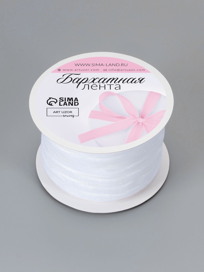 Ленту можно использовать для создания упаковки подарков, украшения елочных игрушек и изготовления тематических композиций. Белый цвет добавляет изделиям чистоты и изысканности, а бархатная фактура придает завершенный вид. Материал не требует специального ухода и сохраняет презентабельный внешний вид даже после новогодних праздников.