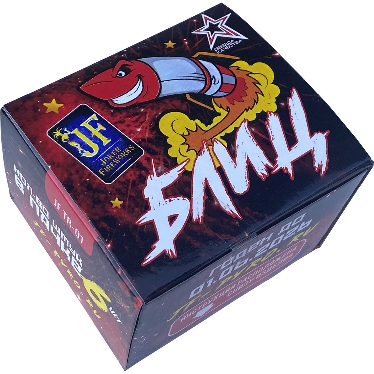 Новинка от марки "Джокер" относится к классу циркоблицев. Такие изделия достаточно слабо представлены в каталогах популярных пиротехнических марок РФ, поэтому каждое из них встерчается с большим энтузиазмом. В упаковке - 6 блицев калибра 25мм.