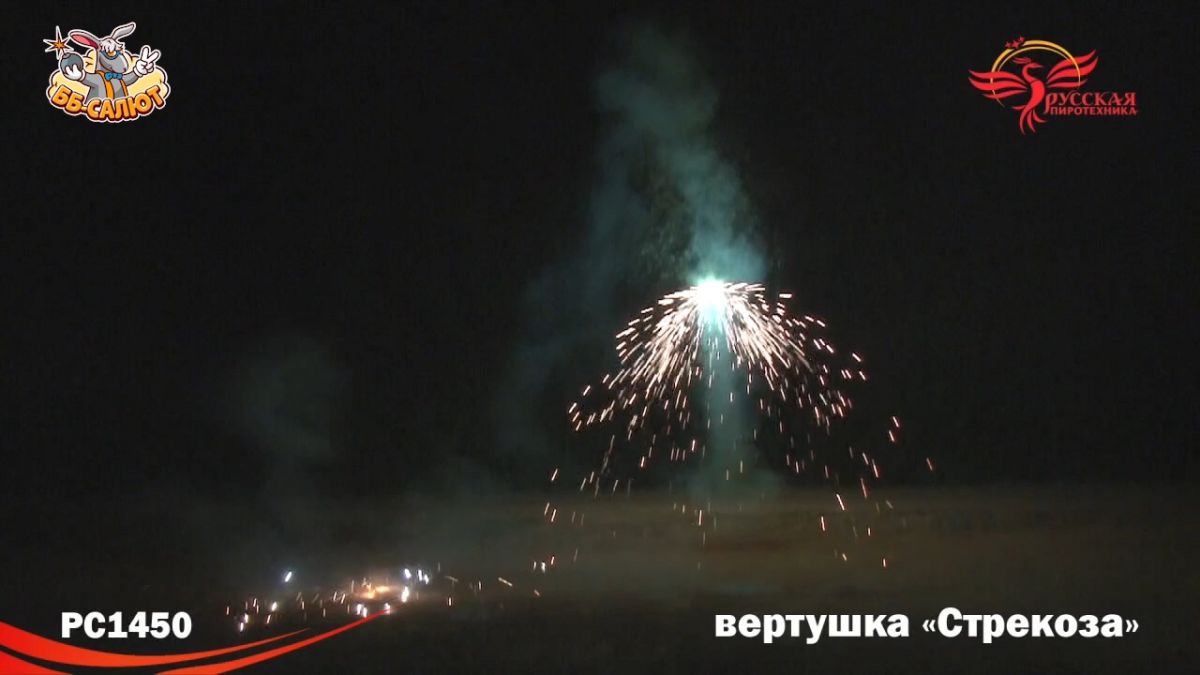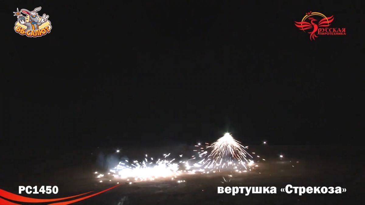 1. Раскручивается на земле, взлетает вверх с разбрасыванием искр, опускается вниз. 2. Снова взлетает вверх с разбрасыванием искр и разрывается трещащими серебряными искрами.