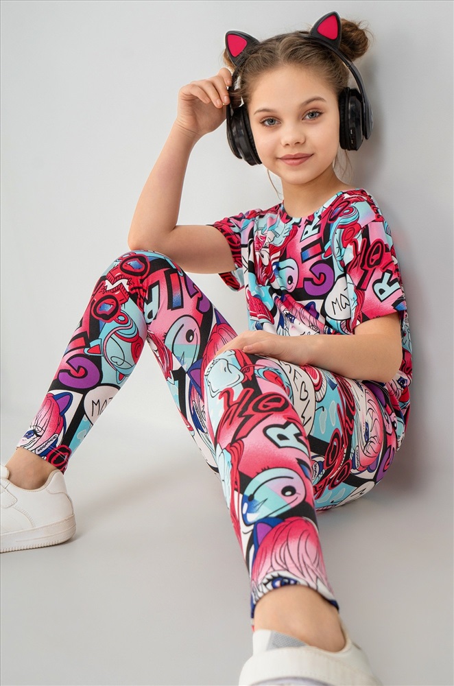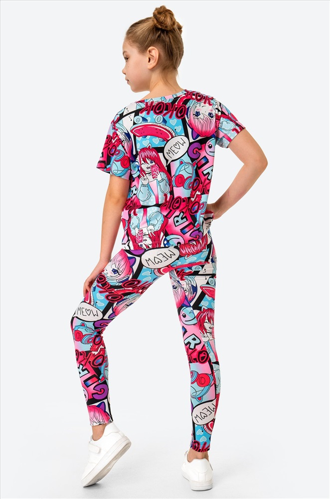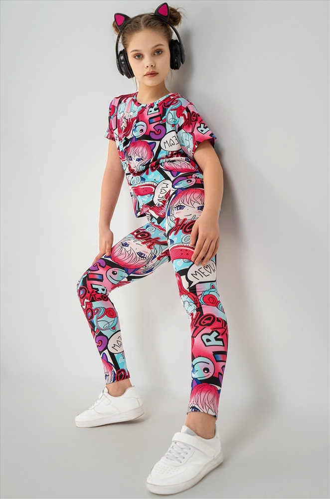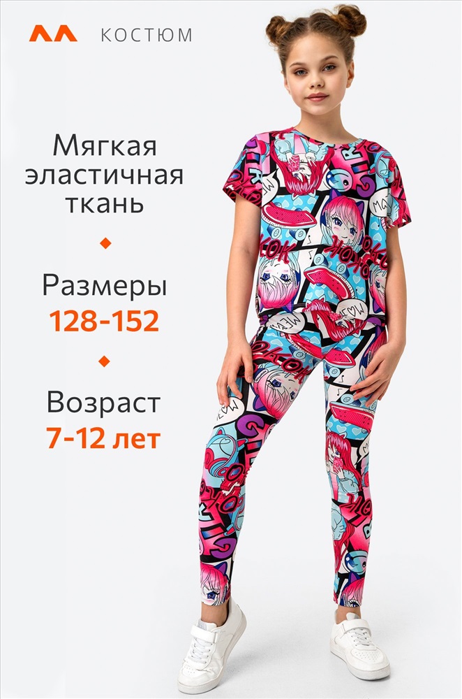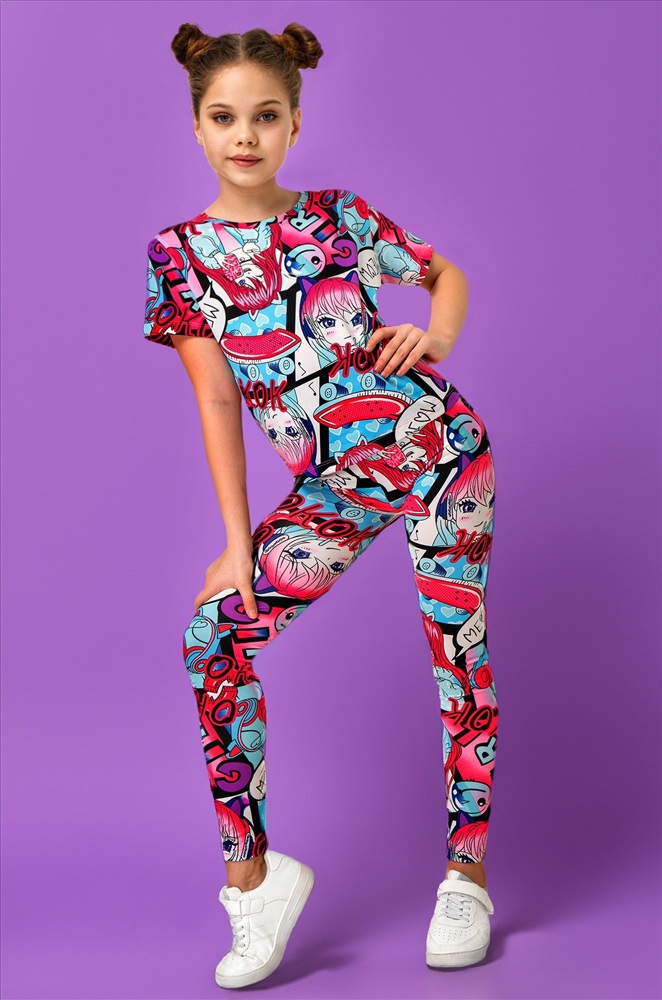 Летний костюм для девочки создан, чтобы каждая прогулка превращалась в маленькое приключение! Облегающие лосины с футболкой для детей и подростков станут отличным решением для активных игр, спорта и повседневных дел. Яркий рисунок Аниме с надписями поднимет настроение и зарядит энергией на всё лето.