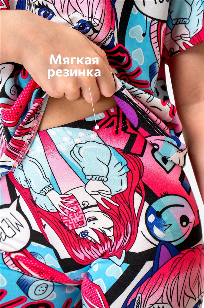 Преимущества: — мягкий трикотаж бамбук дарит нежные ощущения и комфорт в жаркие летние дни; — высокая посадка легинсов, мягкая резинка и плоские швы продуманы до мелочей, чтобы ребенок чувствовал себя свободно и уютно; — легкая трикотажная ткань с высоким содержанием хлопка отлично тянется и позволяет телу дышать; — добавление полиэстера делает подростковый комплект устойчивым к частым стиркам, сохраняя форму и яркость принта; — обтягивающие лосины и прямой крой футболки обеспечивают полную свободу движений; — хлопковый комплект прекрасно подходит для спортивных тренировок, а также для поездок и путешествий. Очаровательный костюм с принтом станет любимым нарядом для дома, домашних дел, на отдыхе и на прогулке.