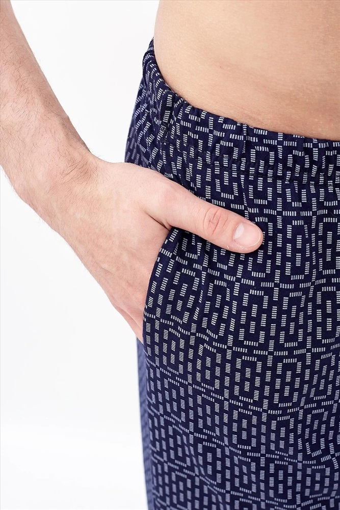 Мужские брюки прямого покроя с карманами. Удобную посадку обеспечивает поясная резинка.