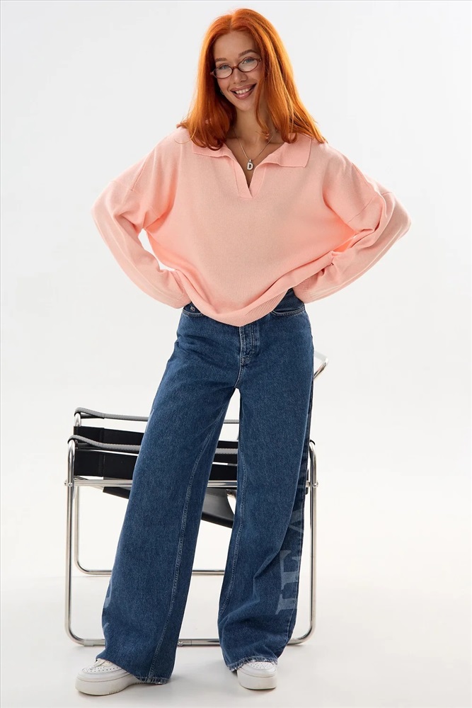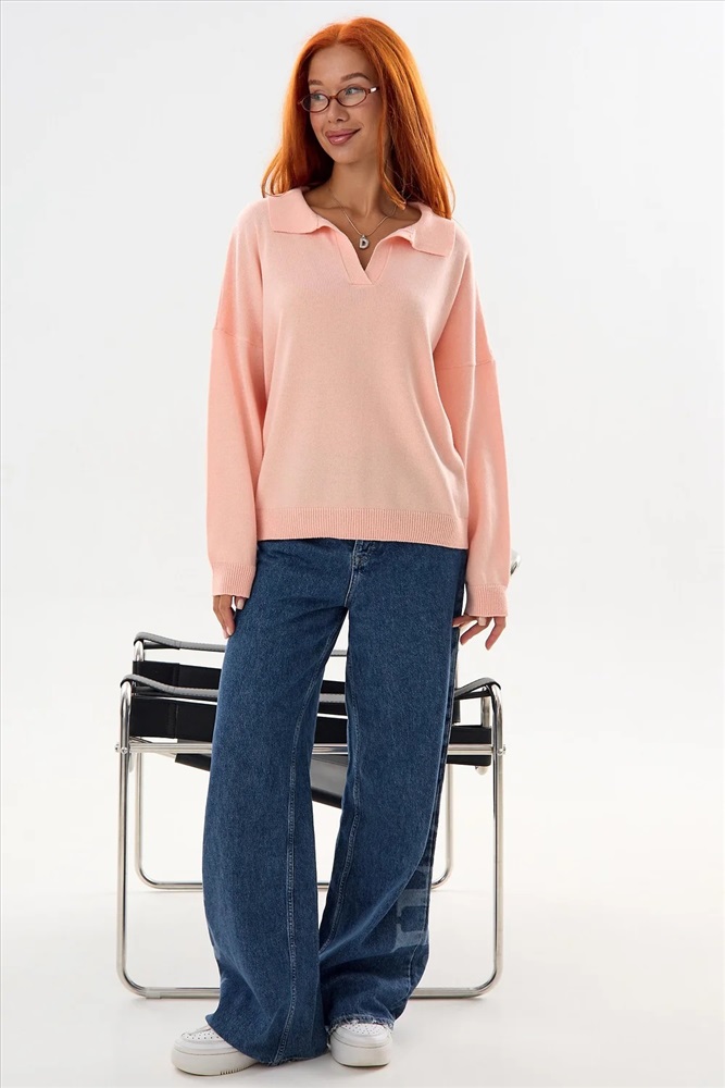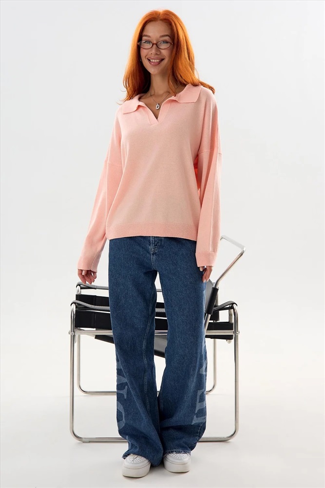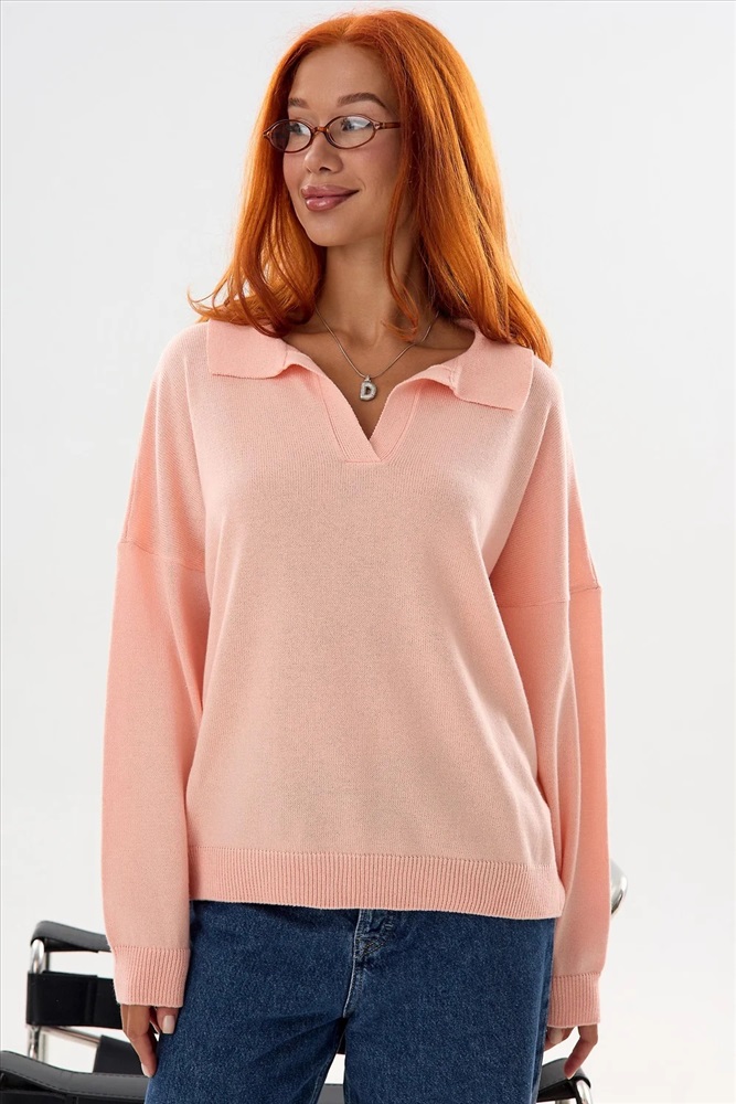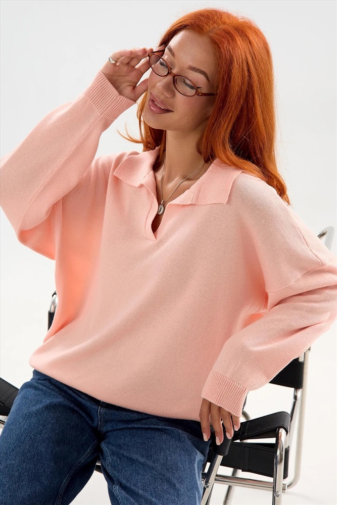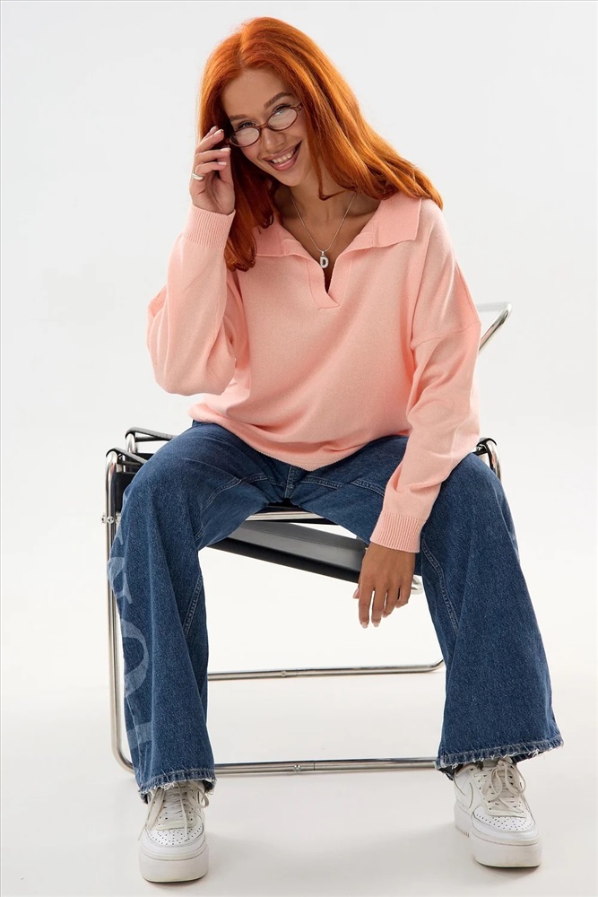 Классический, строгий женский джемпер Феникс. Универсальная модель с отложным воротничком, длинными рукавами с манжетами. Удобный и практичный джемпер на каждый день в холодное время года.