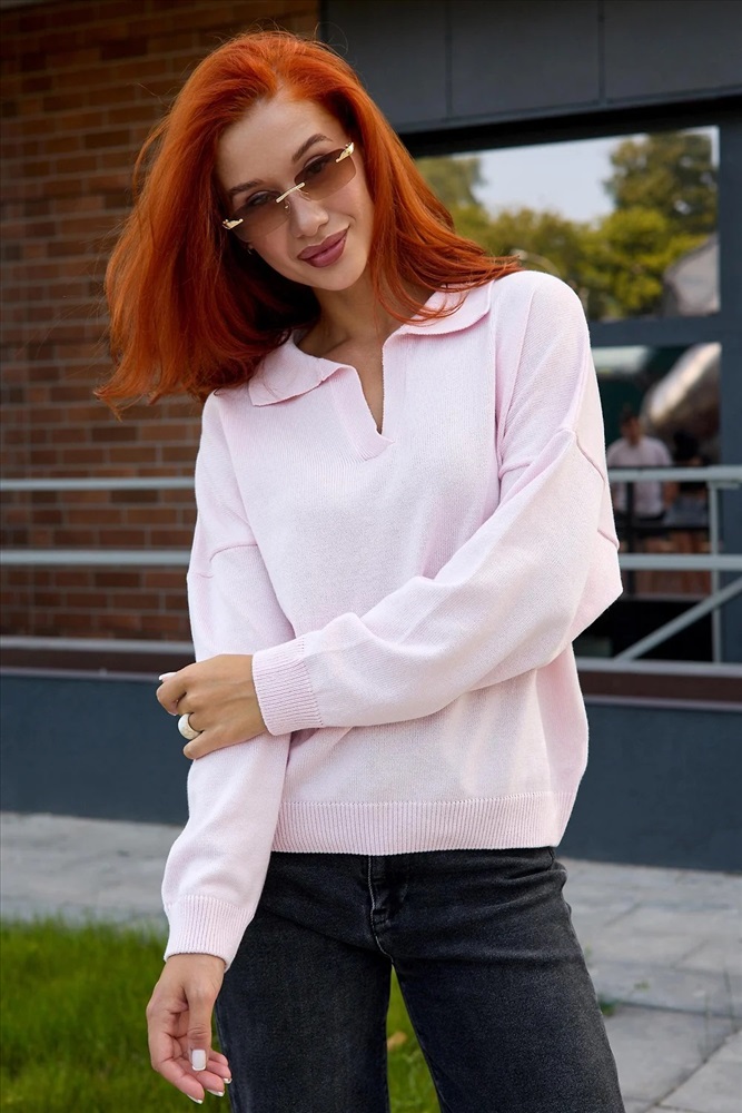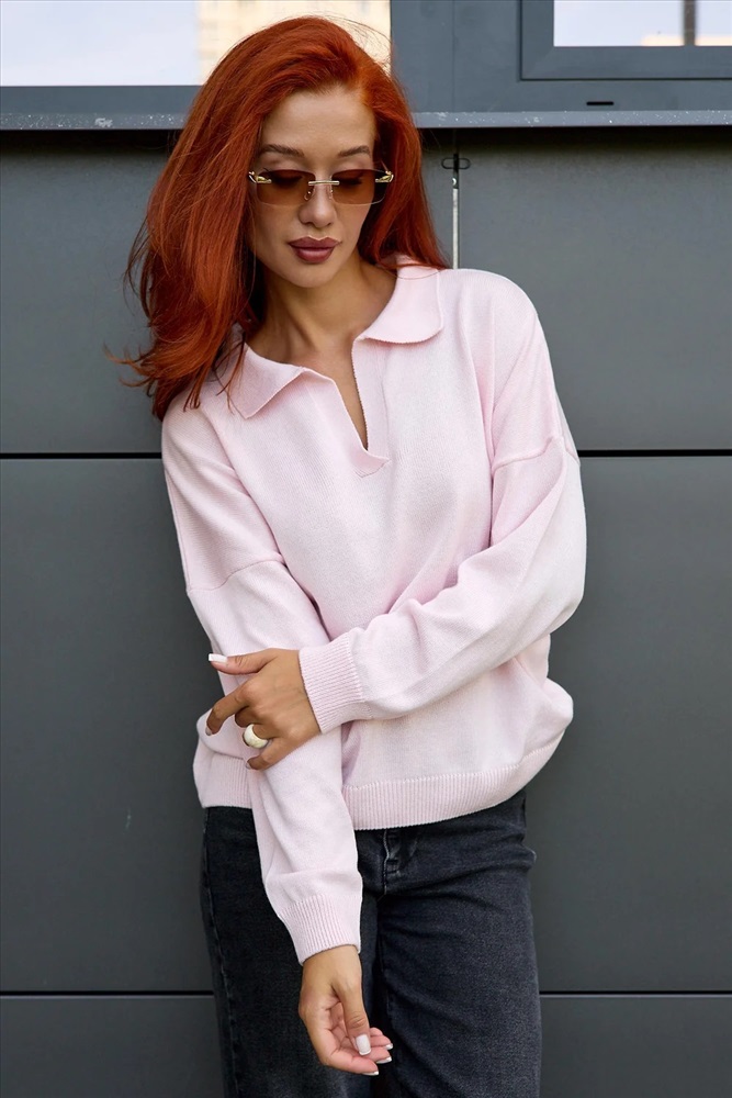 Классический, строгий женский джемпер Феникс. Универсальная модель с отложным воротничком, длинными рукавами с манжетами. Удобный и практичный джемпер на каждый день в холодное время года.