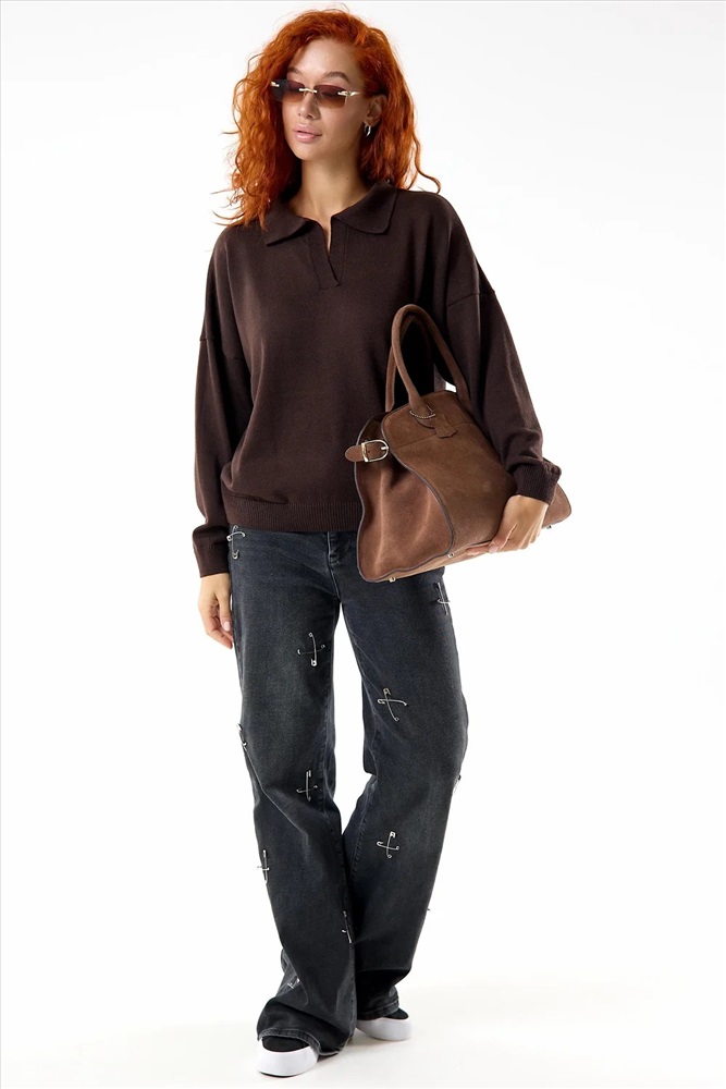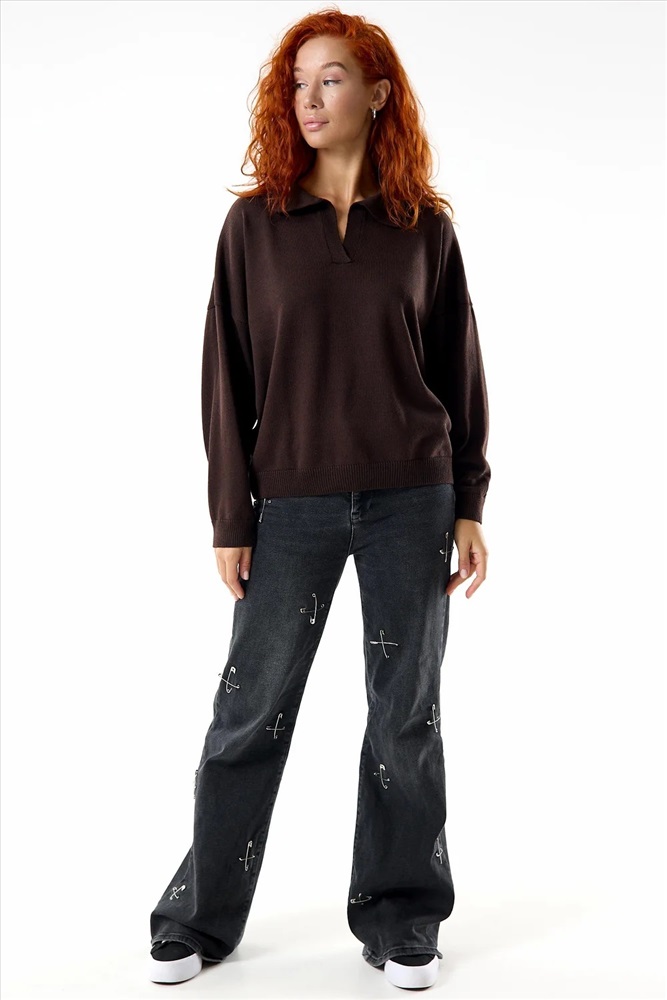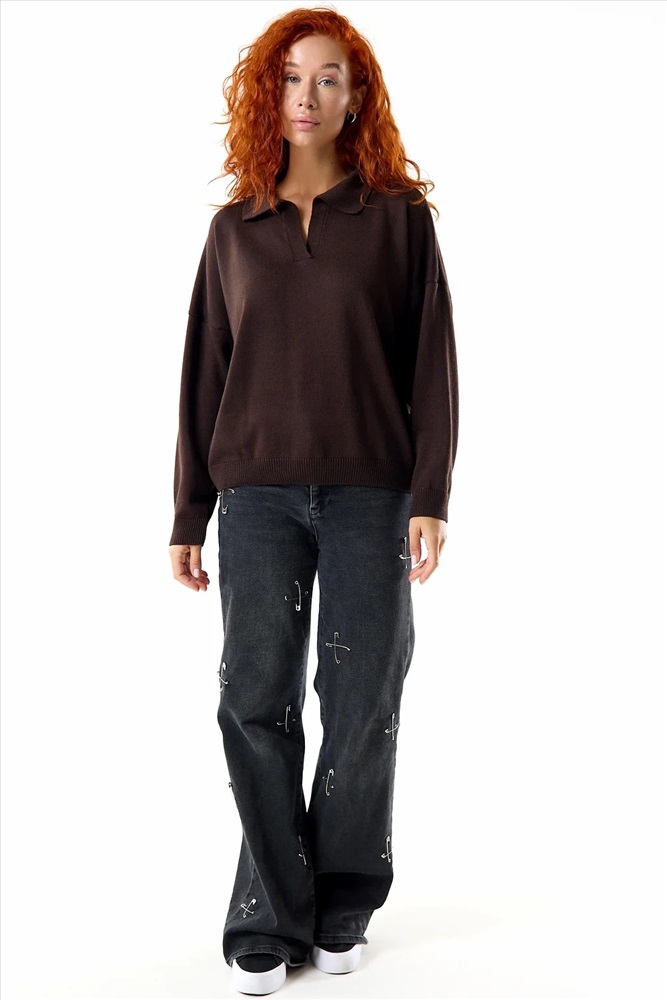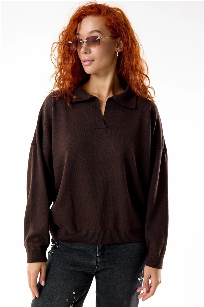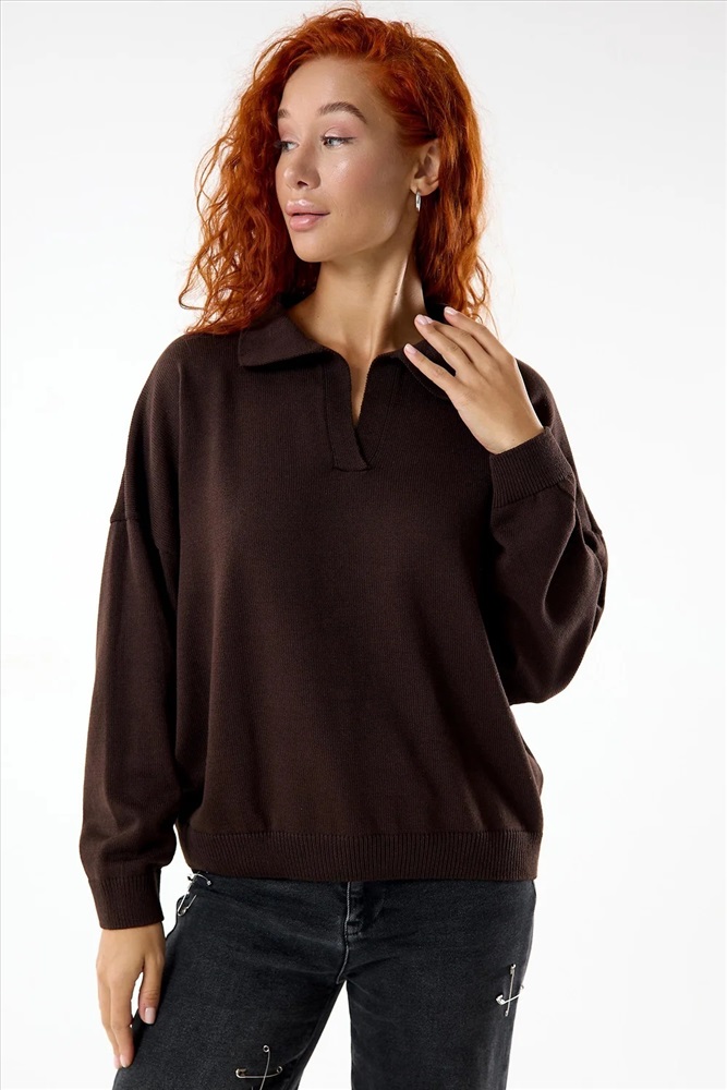 Классический, строгий женский джемпер Феникс. Универсальная модель с отложным воротничком, длинными рукавами с манжетами. Удобный и практичный джемпер на каждый день в холодное время года.