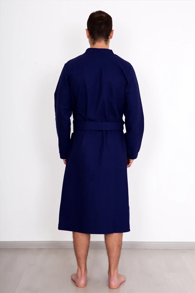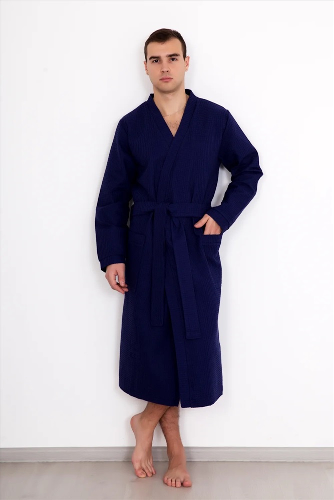 Негоже главе семейства расхаживать после душа, укутавшись в обычное полотенце. Чтобы стряхнуть остатки влаги после приятия ванны, достаточно надеть халат из вафельного полотна. Модель «на запах», в комплекте прилагается пояс. Халат оснащен глубокими карманами для обеспечения максимального комфорта. Модель представлена в насыщенно-синем, классическом «мужском» цвете.