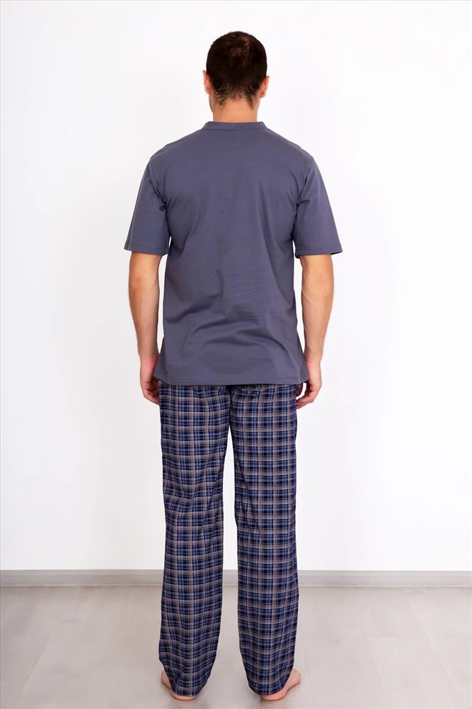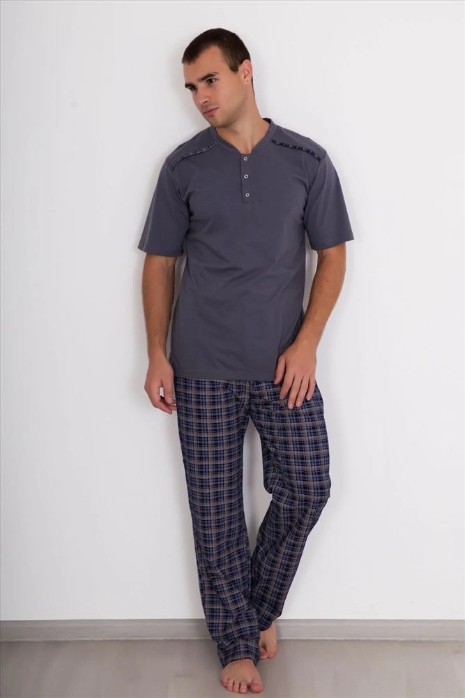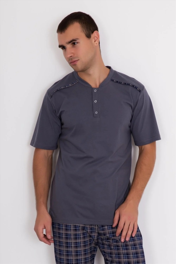 Костюм Клетка – выбор уверенных в себе мужчин. Серого цвета, футболка, которая декорирована кнопками, в сочетании со штанами в клетку – возможность получить комфорт и создать стильный образ в любой обстановке, будь вы дома или на отдыхе. Высокое качество, полный размерный ряд – к чему сомнения?