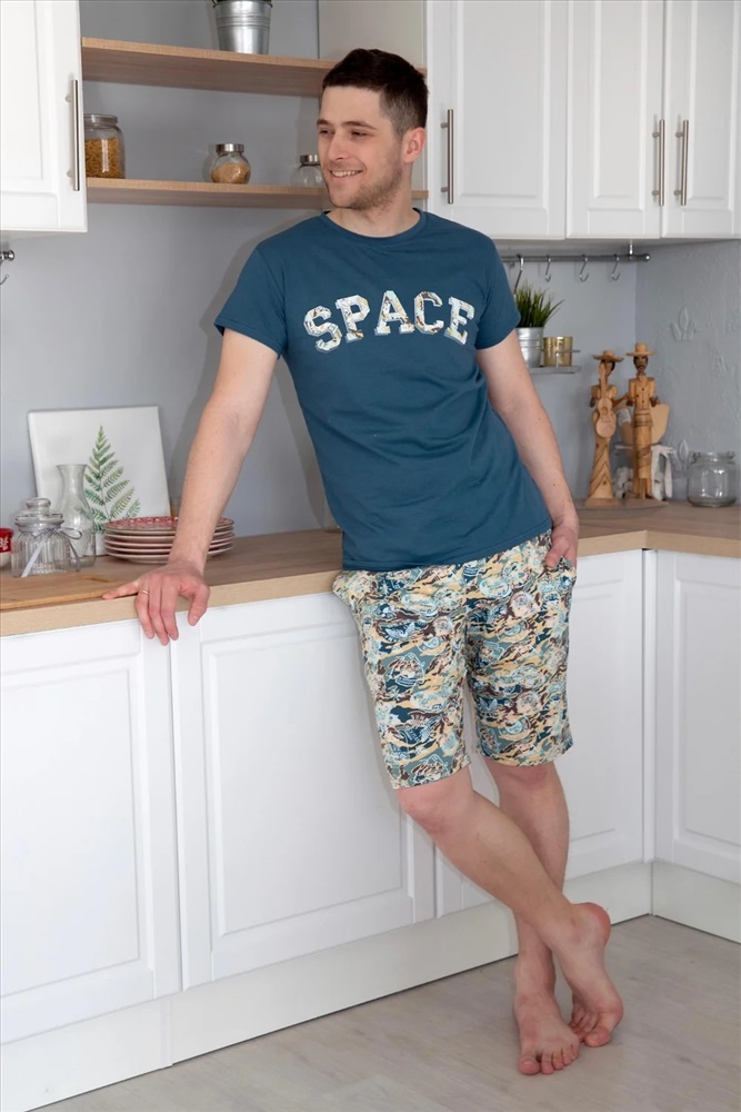 Мужской домашний костюм из 100% хлопка. В комплекте футболка классического кроя с коротким рукавом и круглой горловиной. Яркие шорты с боковыми карманами, длина чуть выше колена. Мягкая ткань и удобная посадка костюма обеспечивают максимальный комфорт. Отличный и удобный вариант на каждый день.