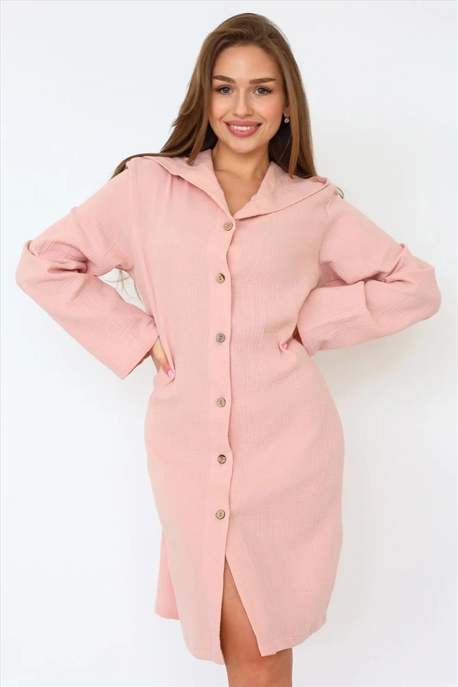 Легкое свободное платье-туника – это универсальный предмет женского гардероба. Модель свободного фасона выполнена из 100% хлопка, платье мягкое, приятное для тела и очень удобное. Застежка на пуговицы и капюшон дополняет удобство в носке. Идеально подойдет для лета и жаркой погоды. Можно носить как платье или тунику, а также использовать как накидку, надевая поверх майки или купальника. Вытягивает силуэт и создает превосходный женственный образ.