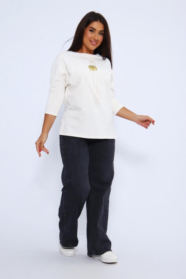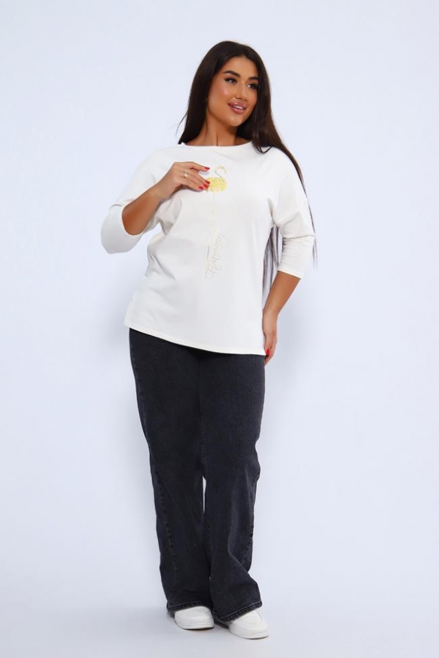 Лонгслив женский с ярким принтом, из плотной кулирки с лайкрой высокого качества пенье. Джемпер с круглой горловиной, обработанной обтачкой, рукав 3/4 длиной, по бокам небольшие разрезы. Модель выполнена из мягкого, эластичного трикотажа, приятного к телу. Стильный, однотонный лонгслив с оригинальным принтом-идеальный вариант базового гардероба. Отлично подходит на каждый день, может быть самостоятельным элементом или частью трендового многослойного образа. Лонгслив представлен в трех топовых расцветках этого сезона, а также имеет широкий размерный ряд до 58 размера. Длина рукава в таблице измерений указана от начала горловины.