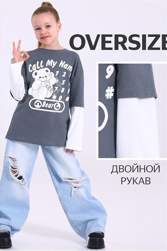 Лонгслив для девочки выполнен из кулира - лёгкого хлопкового полотна. Изделие свободного силуэта, со спущенными плечами и двойными рукавами, Полочка украшена печатью. Уход: только машинная стирка (руками не стирать!) при температуре 40 градусов, без предварительного замачивания. Изделия с печатью перед стиркой необходимо вывернуть на изнаночную сторону.