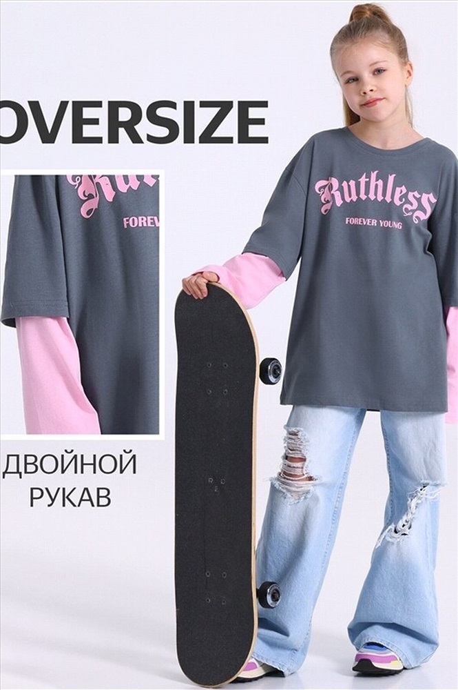 Лонгслив для девочки выполнен из кулира - тонкого хлопкового полотна. Изделие свободного силуэта, со спущенными плечами и двойными рукавами, Полочка украшена печатью. Уход: только машинная стирка (руками не стирать!) при температуре 40 градусов, без предварительного замачивания. Изделия с печатью перед стиркой необходимо вывернуть на изнаночную сторону.