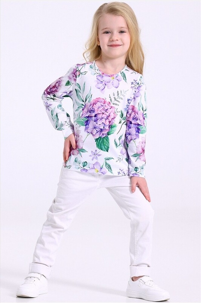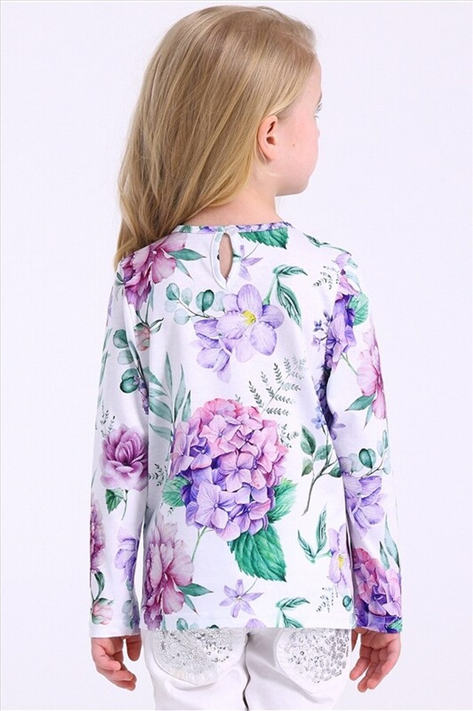 Лонгслив для девочки выполнен из кулира - тонкого хлопкового полотна. Изделие с длинными рукавами, по спинке застегивается на пуговку. Уход: только машинная стирка (руками не стирать!) при температуре 40 градусов, без предварительного замачивания.