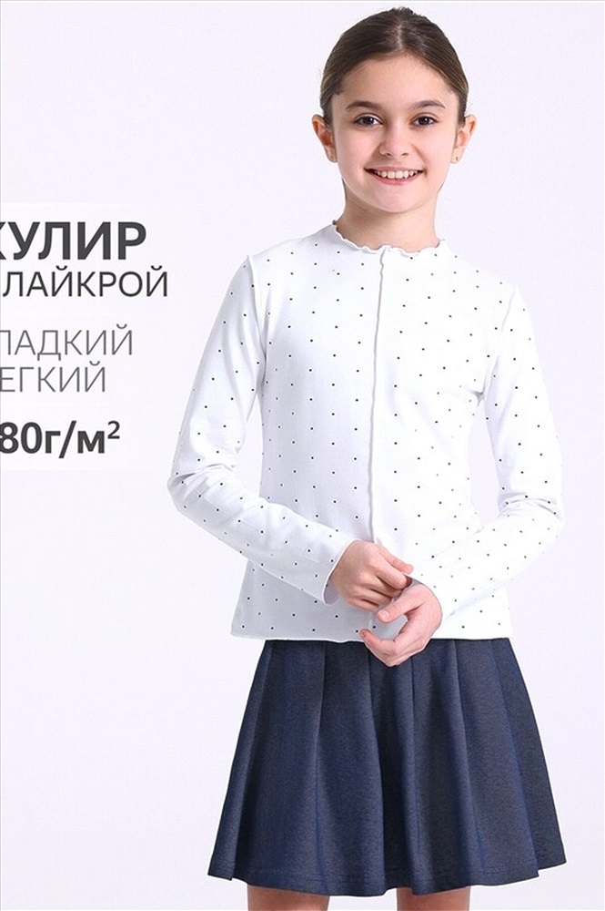 ID товара: 1087380 Состав: Хлопок 92%, Лайкра 8% Сезон: Весна/Лето Длина: Средняя Фасон: Полуприлегающий Рукав: Длинный Вырез горловины: Стоечка Рисунок: Горох Основная ткань: Хлопок Стиль: Повседневный Страна бренда: Россия Страна производства: Россия Лонгслив для девочки выполнен из мягкого хлопкового полотна с лайкрой. Изделие прилегающего силуэта с цельнокроеным воротником-стойкой и удлиненными рукавами. По центру полочки декоративный шов, Открытые срезы по рукавам, горловине и низу изделия обработаны оверлоком. Уход: только машинная стирка (руками не стирать!) при температуре 40 градусов, без предварительного замачивания. Материал: кулир с лайкрой Комментарии к товару
