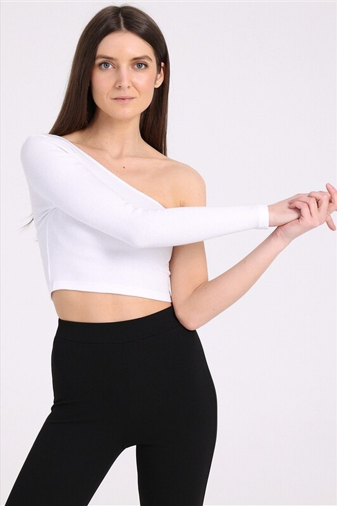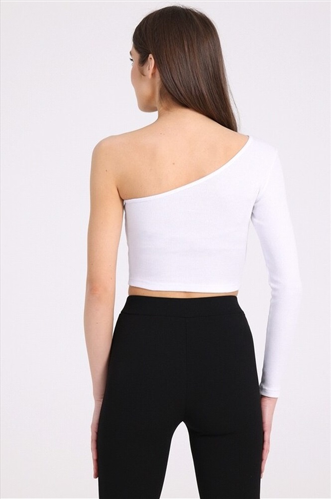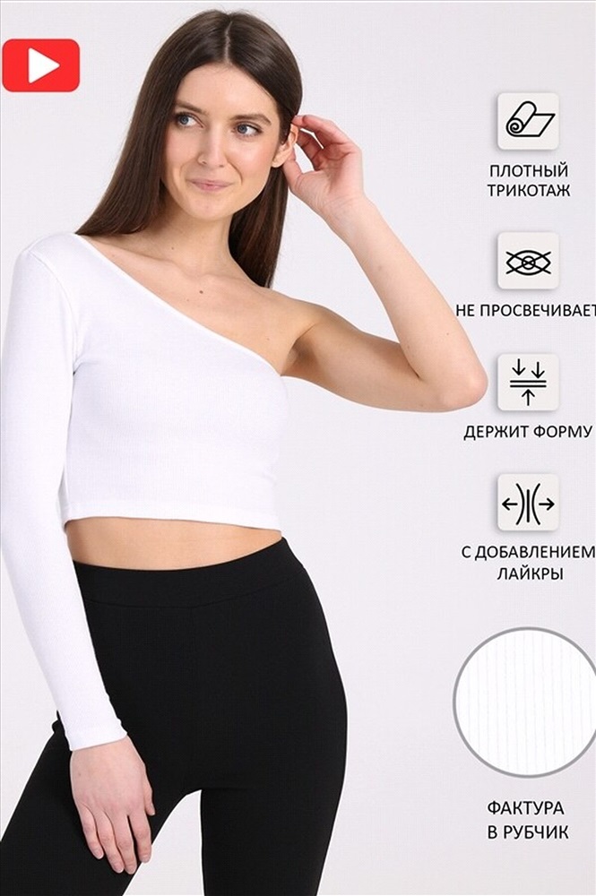 Стильный укороченный топ выполнен из ластика - эластичного хлопкового полотна в рубчик. Изделие прилегающего силуэта, длиной до талии, с вырезом на одно плечо и одним рукавом. Отличный выбор на каждый день! Уход: только машинная стирка (руками не стирать!) при температуре 40 градусов, без предварительного замачивания. Тип полотна - ластик