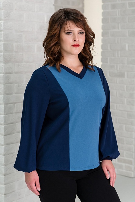 Лонгслив выполнен в мягких синих оттенках, темный индиго и светлый оттенок лазурного голубого, гармонично сочетается с линиями кроя и создает Ваш достойный образ.