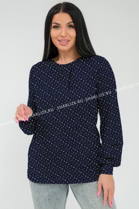 Набивка отличается от представленной на фото. Женственный лонгслив плотного синего цвета с геометрическим принтом нежного оттенка индиго.