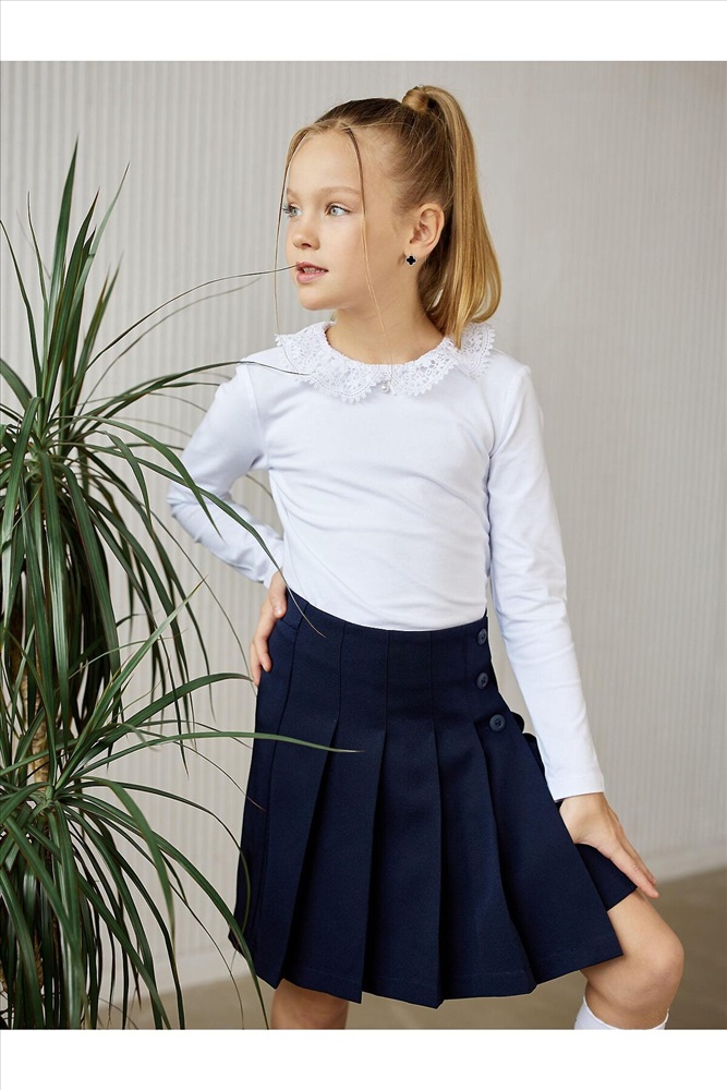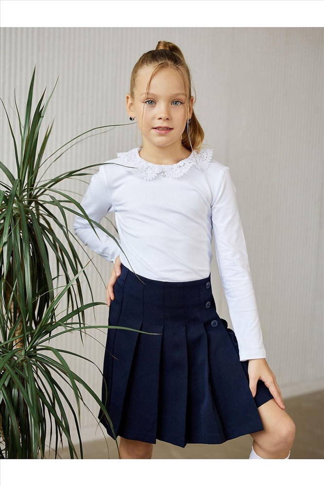Лонгслив для девочки белый из супрема пенье с длинным рукавом. Лонгслив детский школьный от бренда batik из невероятно мягкого хлопкового трикотажа. Модель прямого кроя с ажурным отложным воротничком.