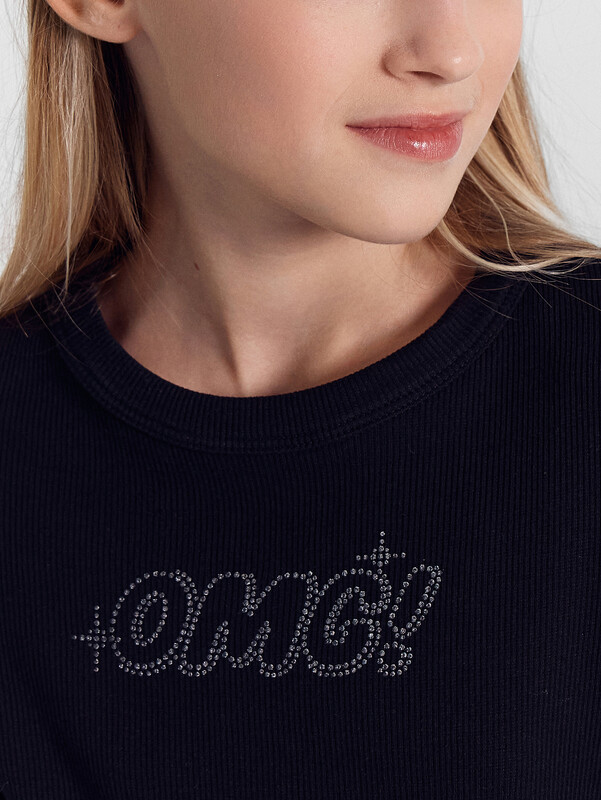 Лаконичный джемпер с аппликацией из страз станет отличным дополнением гардероба вашей юной ценительницы стиля. Модель с длинными рукавами и круглым вырезом горловины выполнена из рибаны — высококачественного трикотажного материала, известного своей эластичностью и долговечностью. Рибана обеспечивает превосходную посадку по фигуре и приятное прилегание к коже, даря комфорт и свободу движений. Этот джемпер прекрасно подходит для повседневного ношения, сохраняя форму и яркость цвета даже после множества стирок. Рекомендуем!