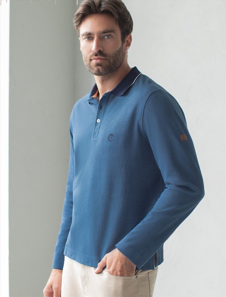 Стильный лонгслив светло-синего цвета с плетеным воротником поло с застежкой на пуговицы выполнен из премиального хлопка в сочетании с эластаном .Невероятно мягкая ткань из натуральных волокон - она едва ощутима на коже и словно обнимает тело. Материал при касании кажется бархатистым, при движении он словно повторяет все мельчайшие линии фигуры. По свойствам материал сочетает в себе практичность и нежность: отлично провускает воздух, сохраняя ощущение свежести в течение всего дня, при этом созраняет тепло в прохладную погоду.Идеально подходит для чувствительной кожи, не вызывает раздражения и дискомфорта. Удобный отложной воротник делает образ современным и стильным, а длинные рукава с манжетами защищают руки при ветреной погоде.