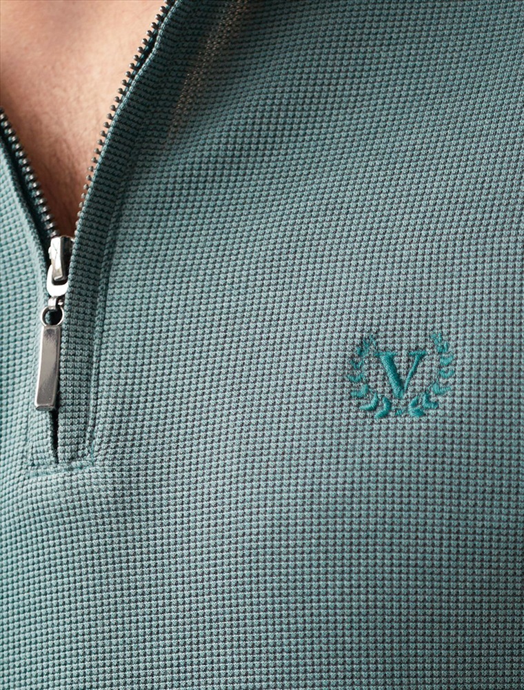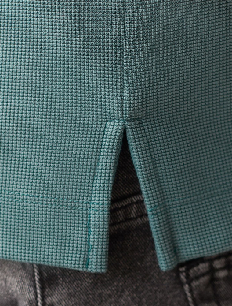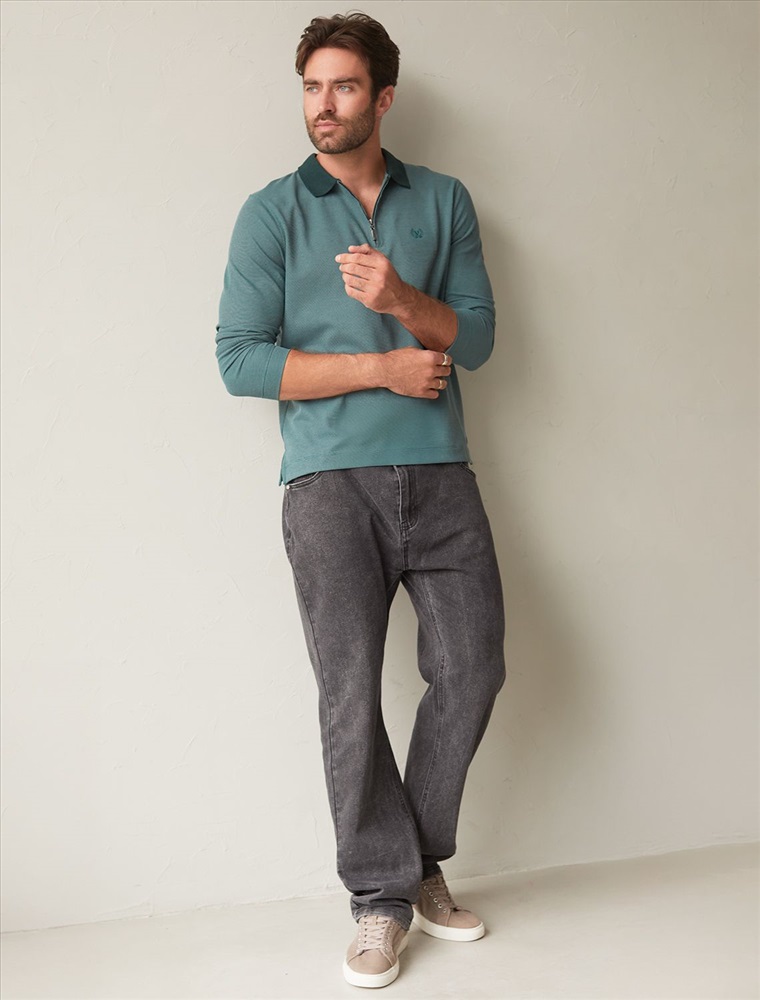 Стильный лонгслив дымчато-изумрудного цвета с плетеным воротником поло с застежкой на молнию выполнен из премиального хлопка в сочетании с эластаном .Невероятно мягкая ткань из натуральных волокон - она едва ощутима на коже и словно обнимает тело. Материал при касании кажется бархатистым, при движении он словно повторяет все мельчайшие линии фигуры. По свойствам материал сочетает в себе практичность и нежность: отлично провускает воздух, сохраняя ощущение свежести в течение всего дня, при этом созраняет тепло в прохладную погоду.Идеально подходит для чувствительной кожи, не вызывает раздражения и дискомфорта. Удобный отложной воротник делает образ современным и стильным, а длинные рукава с манжетами защищают руки при ветреной погоде.