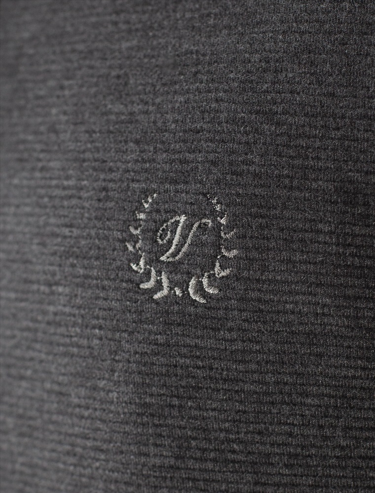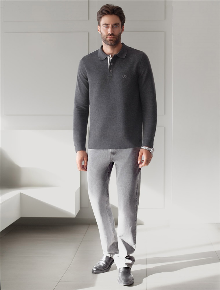 Стильный лонгслив темно-серого цвета с эффектом меланж с плетеным воротником поло с застежкой на металлические пуговицы выполнен из премиального хлопка в сочетании с эластаном . Невероятно мягкая ткань из натуральных волокон - она едва ощутима на коже и словно обнимает тело. Материал при касании кажется бархатистым, при движении он словно повторяет все мельчайшие линии фигуры. По свойствам материал сочетает в себе практичность и нежность: отлично проgускает воздух, сохраняя ощущение свежести в течение всего дня, при этом в нем тепло в прохладную погоду.Идеально подходит для чувствительной кожи, не вызывает раздражения и дискомфорта. Удобный отложной воротник с контрастной отделкой делает образ современным и стильным, а длинные рукава с манжетами защищают руки при ветреной погоде.