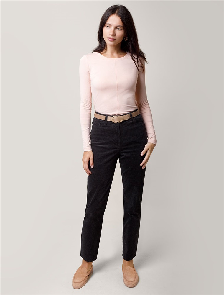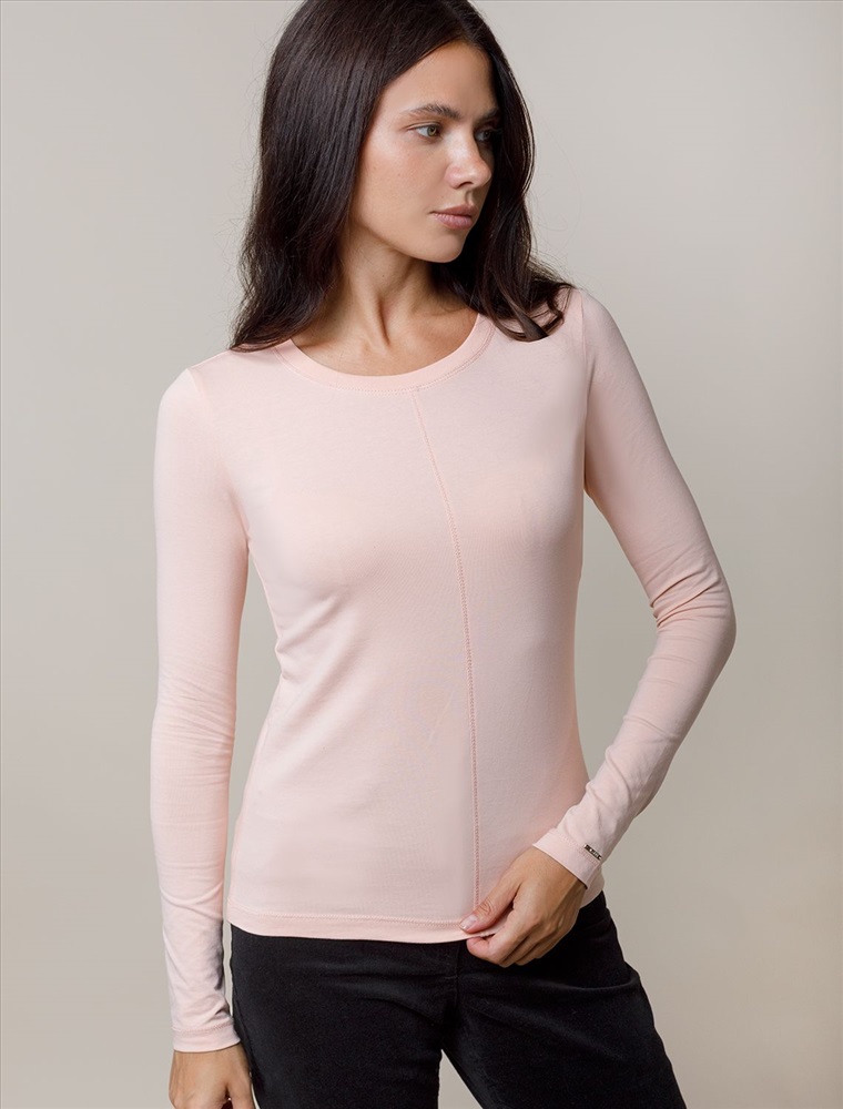 Лонгслив выполнен из премиального хлопка с эластаном. Модель прилегающего силуэта идеально сидит по фигуре. Хорошо подойдет первым слоем в многослойные образы. Фишкой изделия служат декоративные швы и фирменный металлический логотип бренда на рукаве.