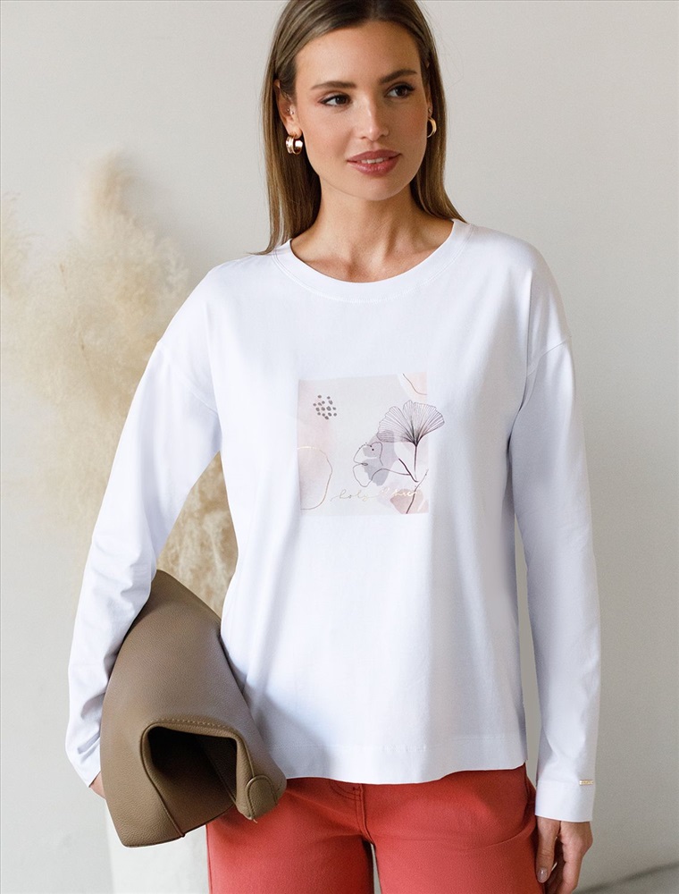 Свободный лонгслив белого цвета с длинным рукавом выполнен из премиального хлопка с добавлением эластана, плотностью 170 Г/м2, что обеспечивает комфорт и приятные тактильные ощущения. Принт в виде цветка, который нанесен красками с устойчивым покрытием, добавляет стиля и индивидуальности, а круглый ворот создает универсальный образ, который подойдет для повседневного использования. Такой лонгслив идеально подходит для весеннего и летнего сезона благодаря легкой и дышащей ткани. Представленная широкая размерная линейка позволяет выбрать оптимальный вариант на любую фигуру, в том числе на плюс-сайз, обеспечивая свободу движений и удобство на каждый день. Этот комфортный лонгслив станет отличной базой в гардеробе, сочетаясь с различными стилями одежды и создавая простой, но эффектный образ.