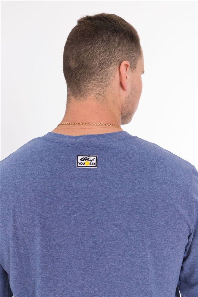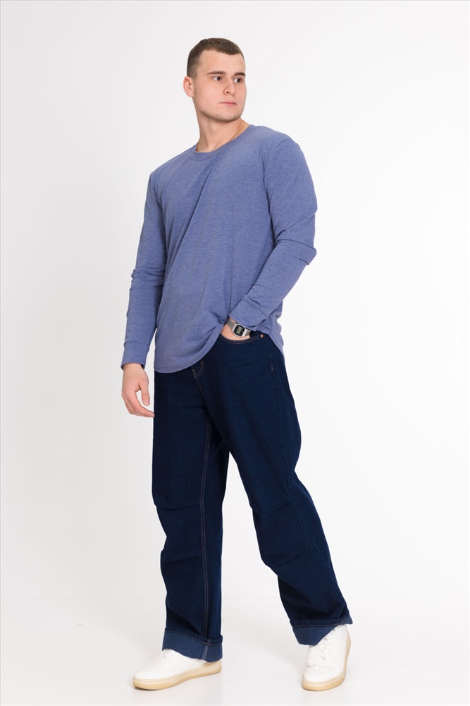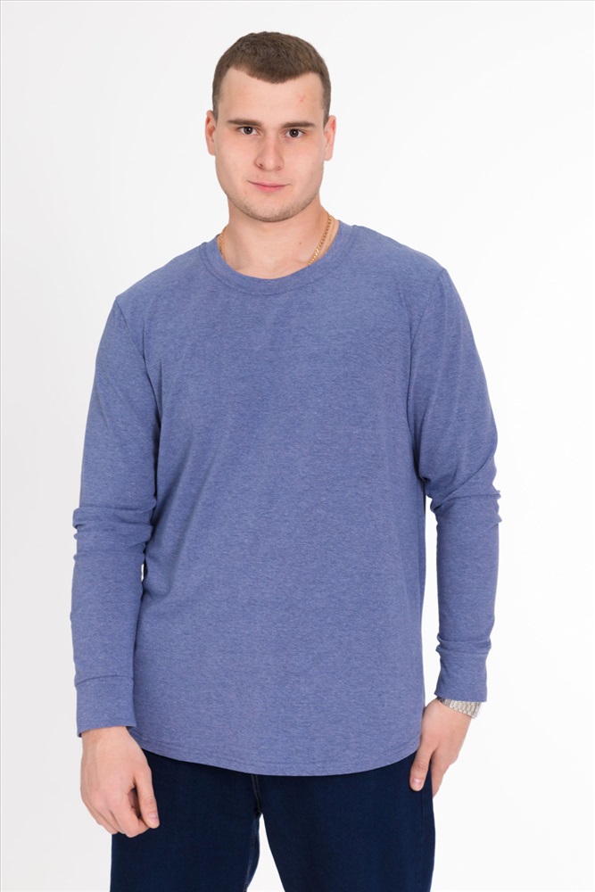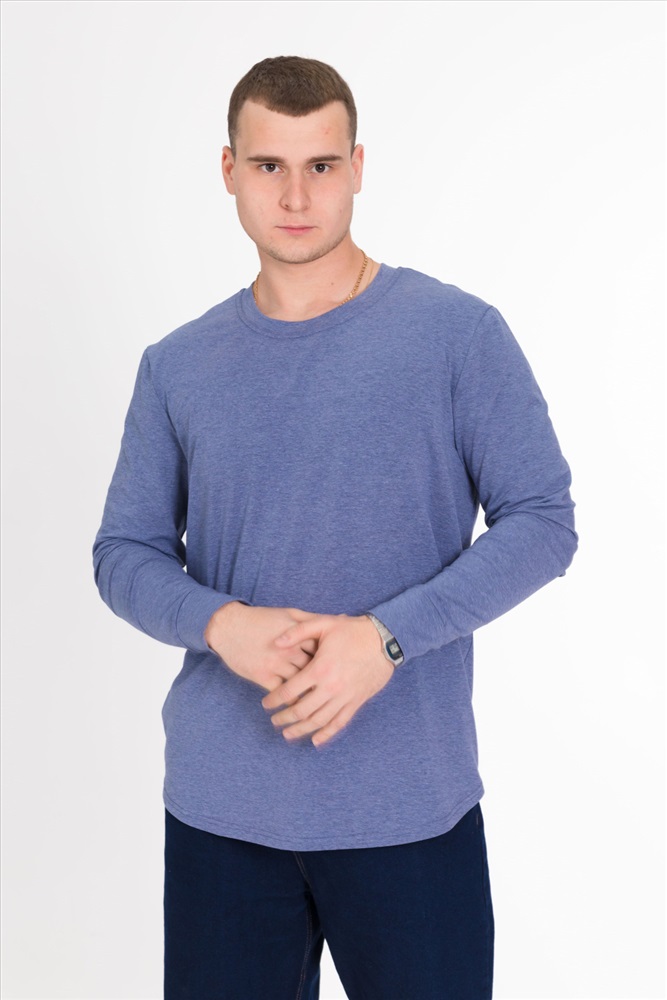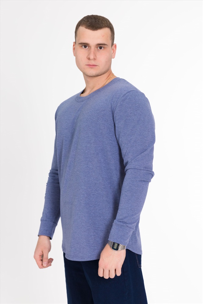 Застежка: Без застежки С капюшоном: Нет С карманами: Нет Сезон: Всесезонный Силуэт: Прямой Состав: Хлопок 95% Лайкра 5% Цвет Номенклатуры: индиго Футболка выполнена из однотонной кулирки с лайкрой. С длинным втачным рукавом на манжете. На спинке декоративная нашивка, низ футболки фигурный. Комментарии к товару